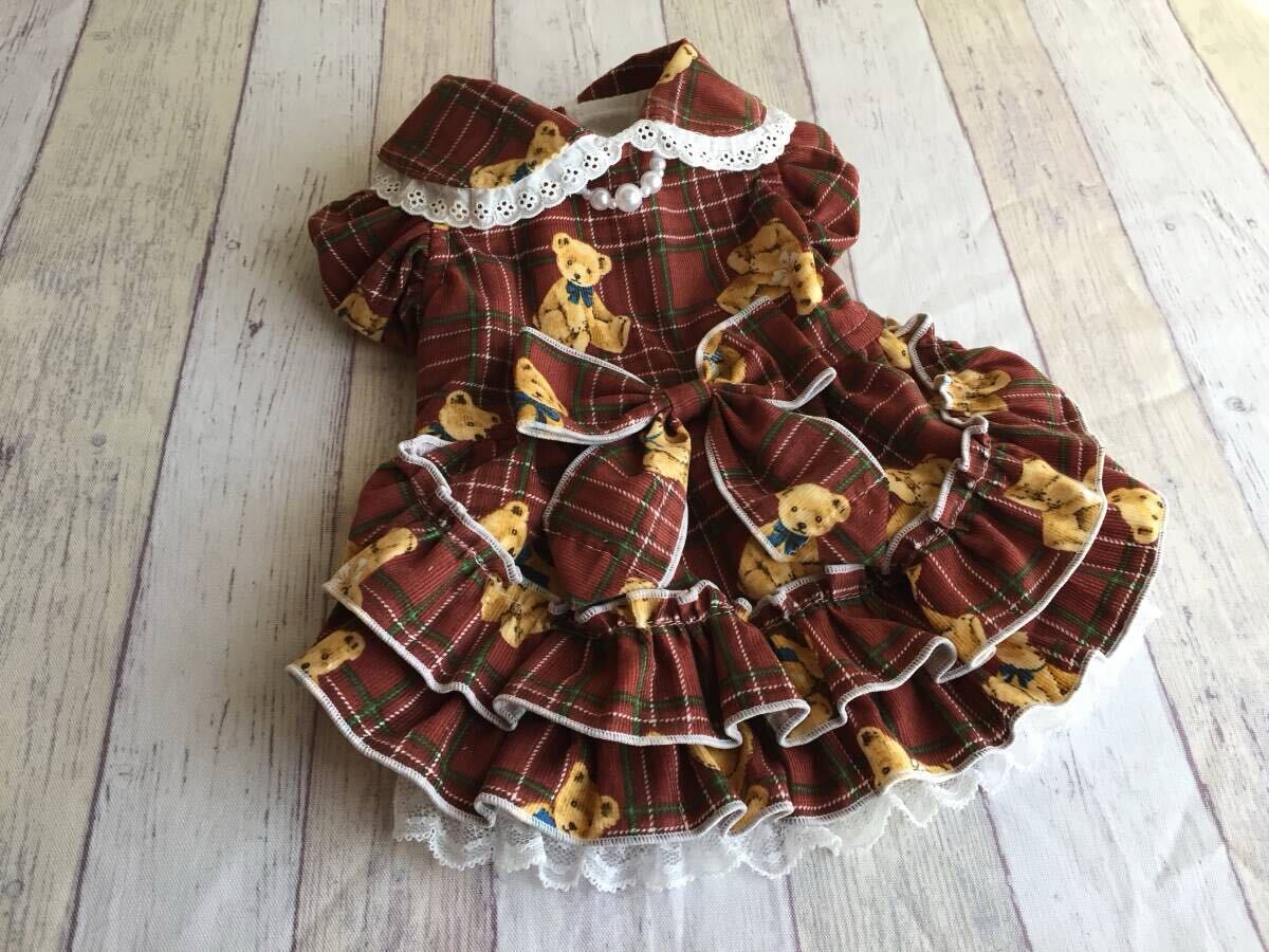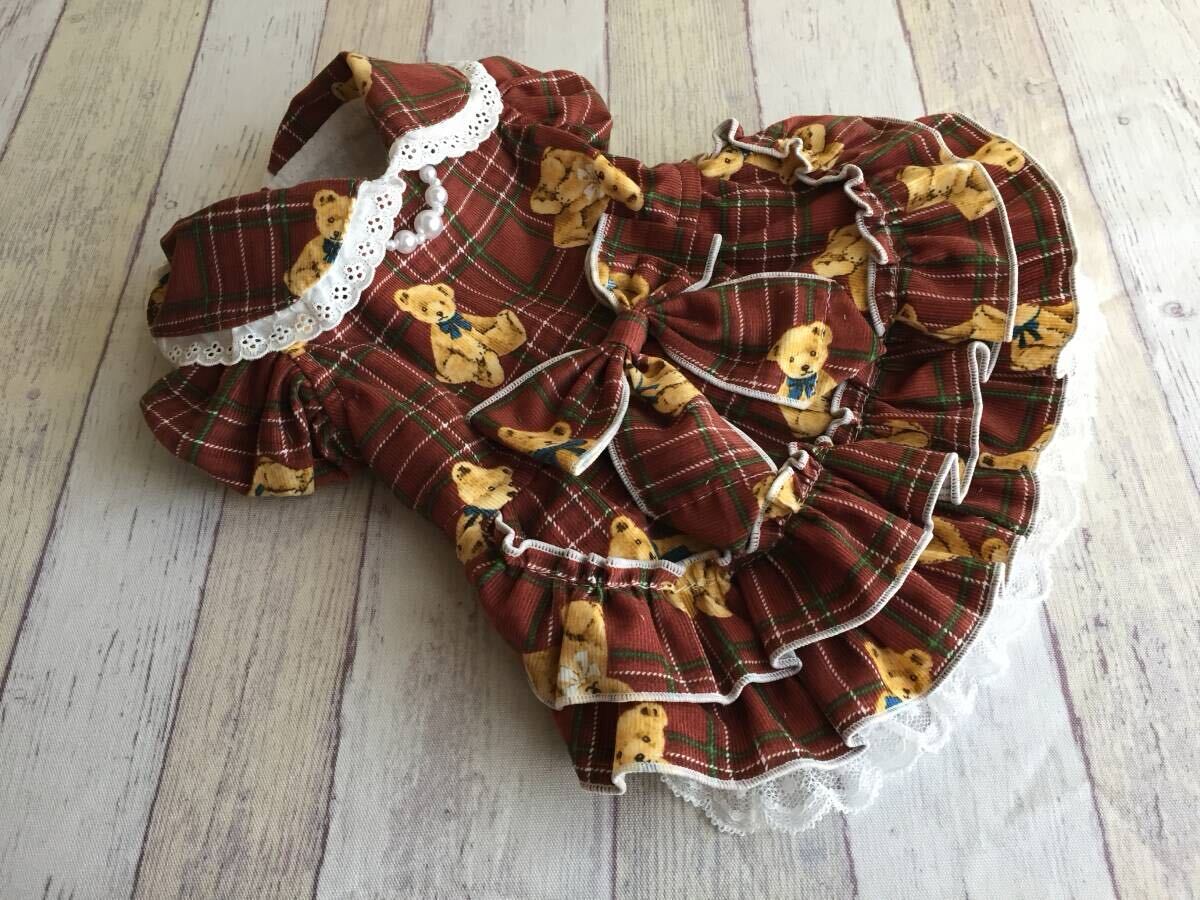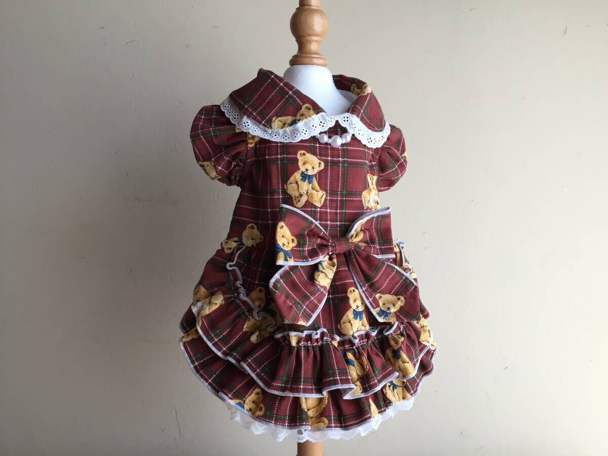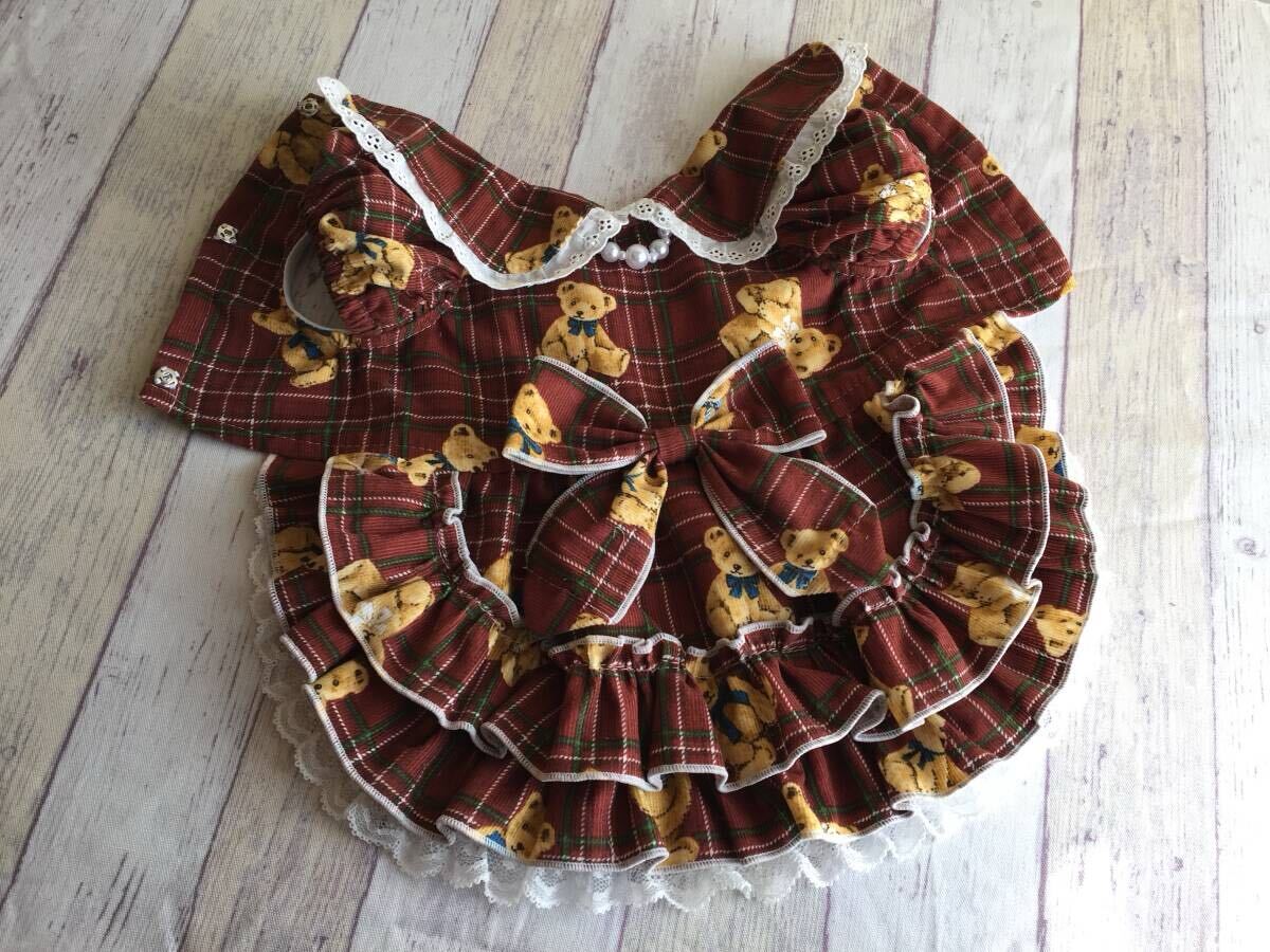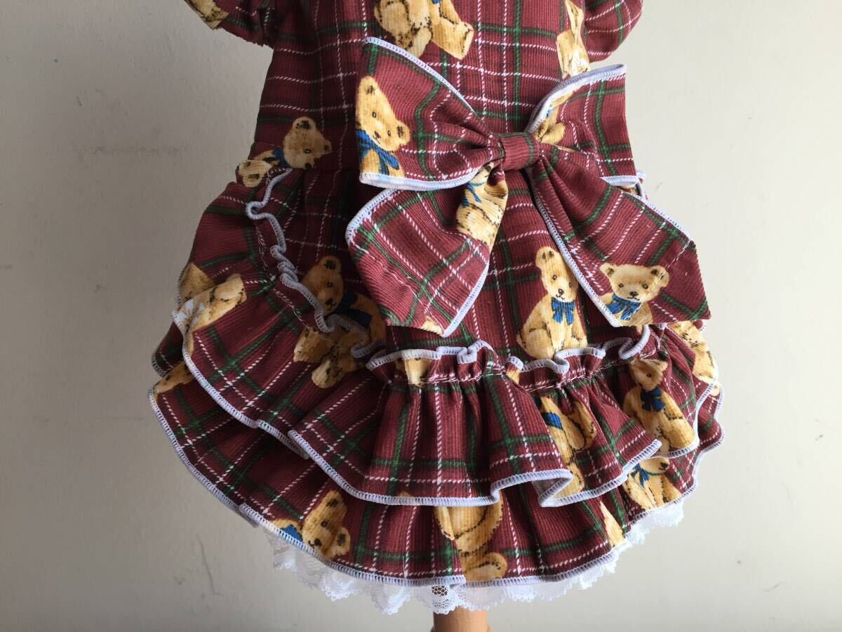◎胴囲34◎テディベア*レッドコールテン*チェック*フリルスカート姫ワンピ*前開き