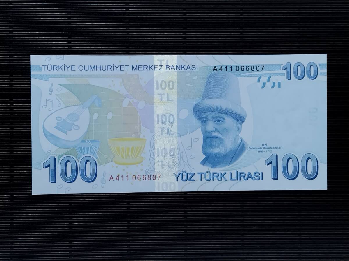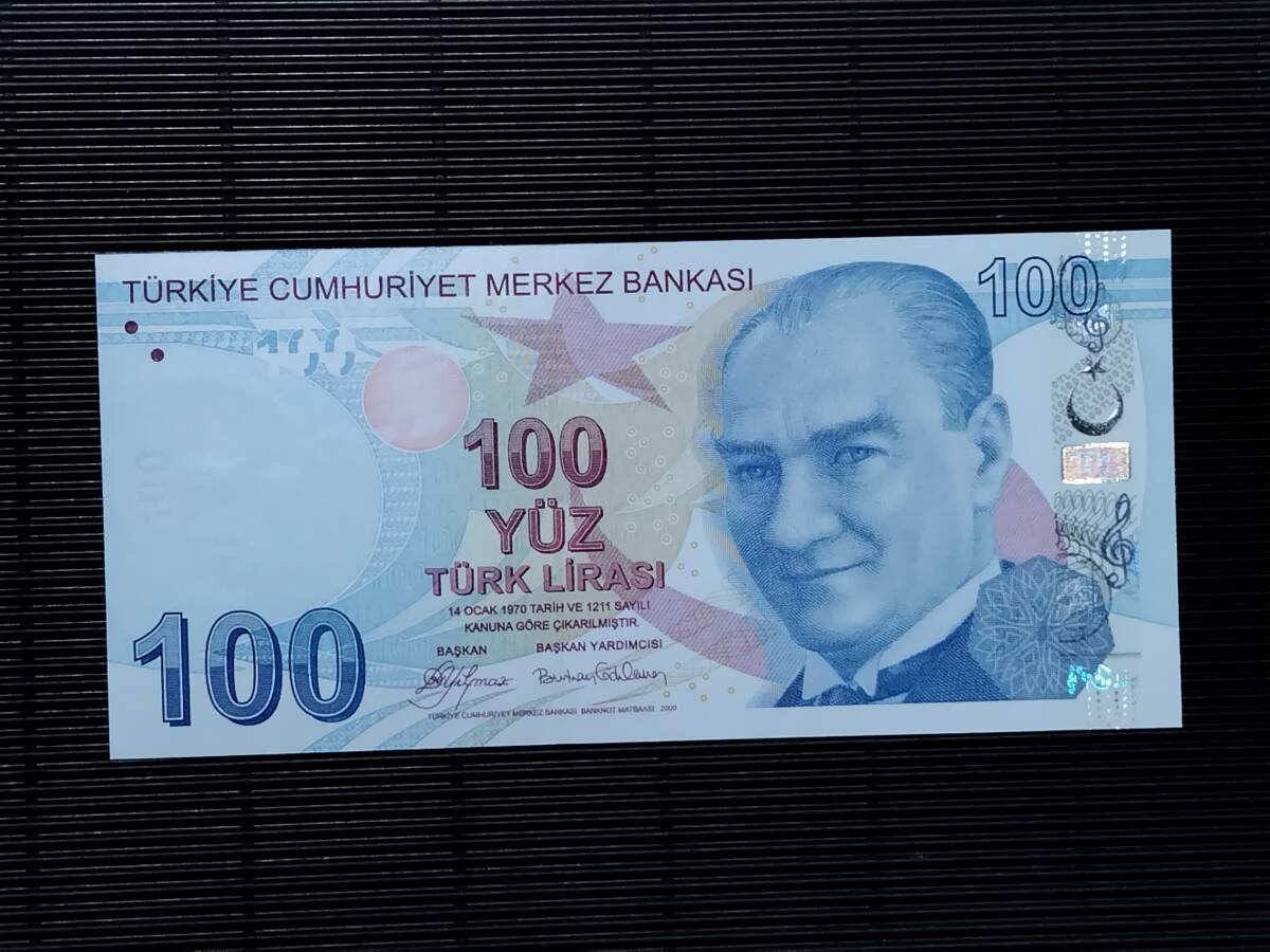 トルコ 100 Lira札 コレクション向きのピン札 2009年 未使用~甘い未使用 楽器 初期発行版#A p-226a #A411 066807
