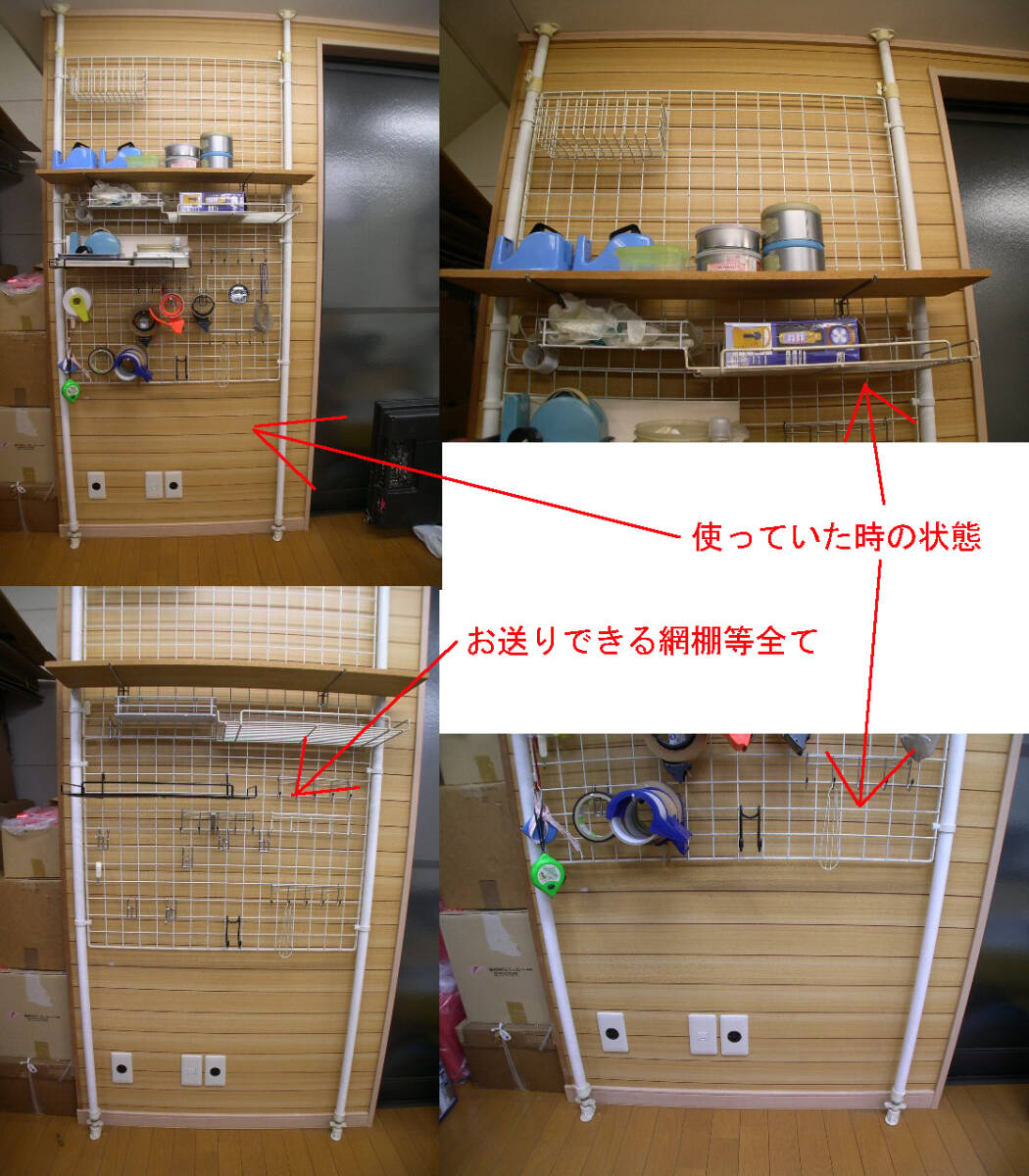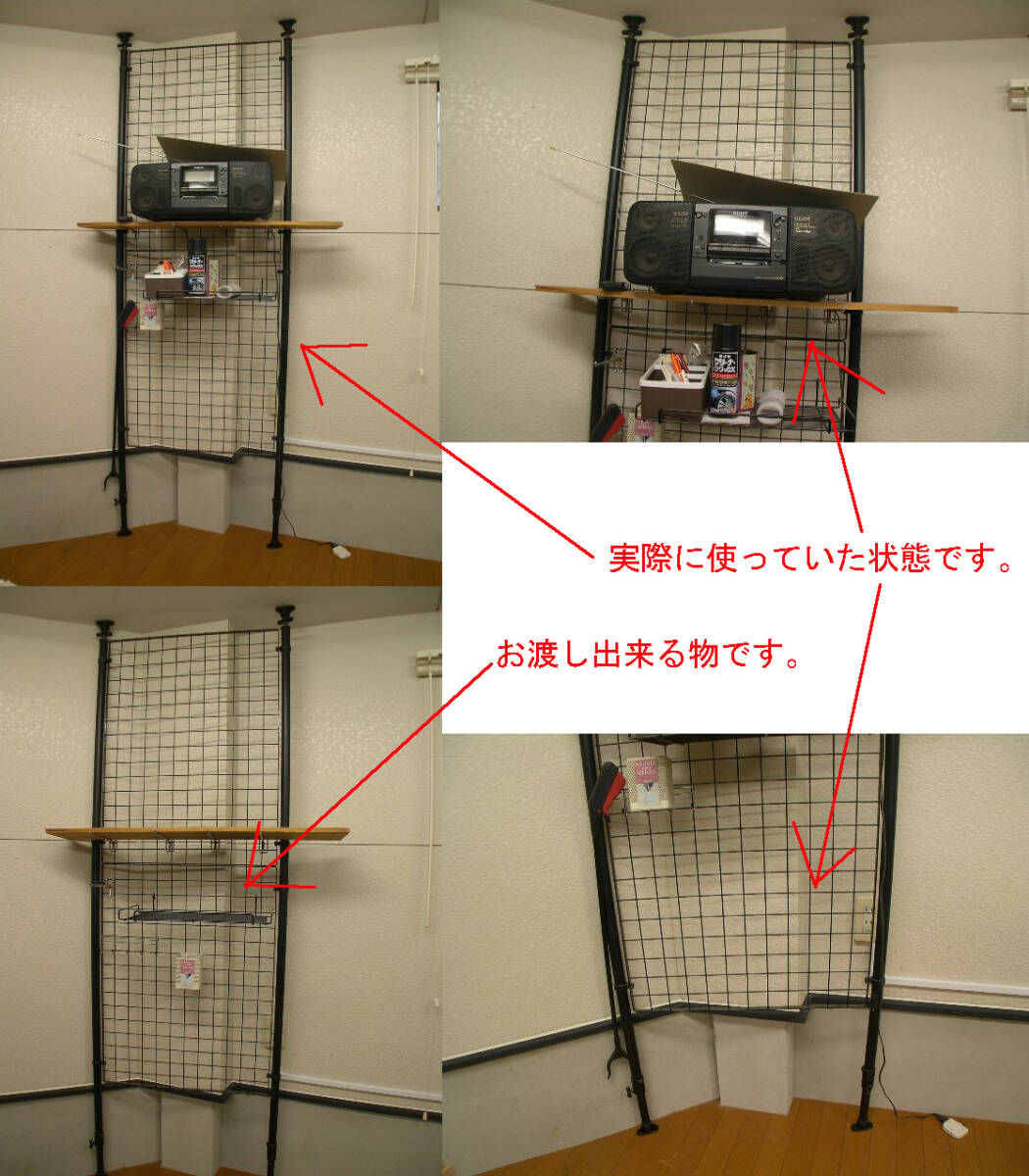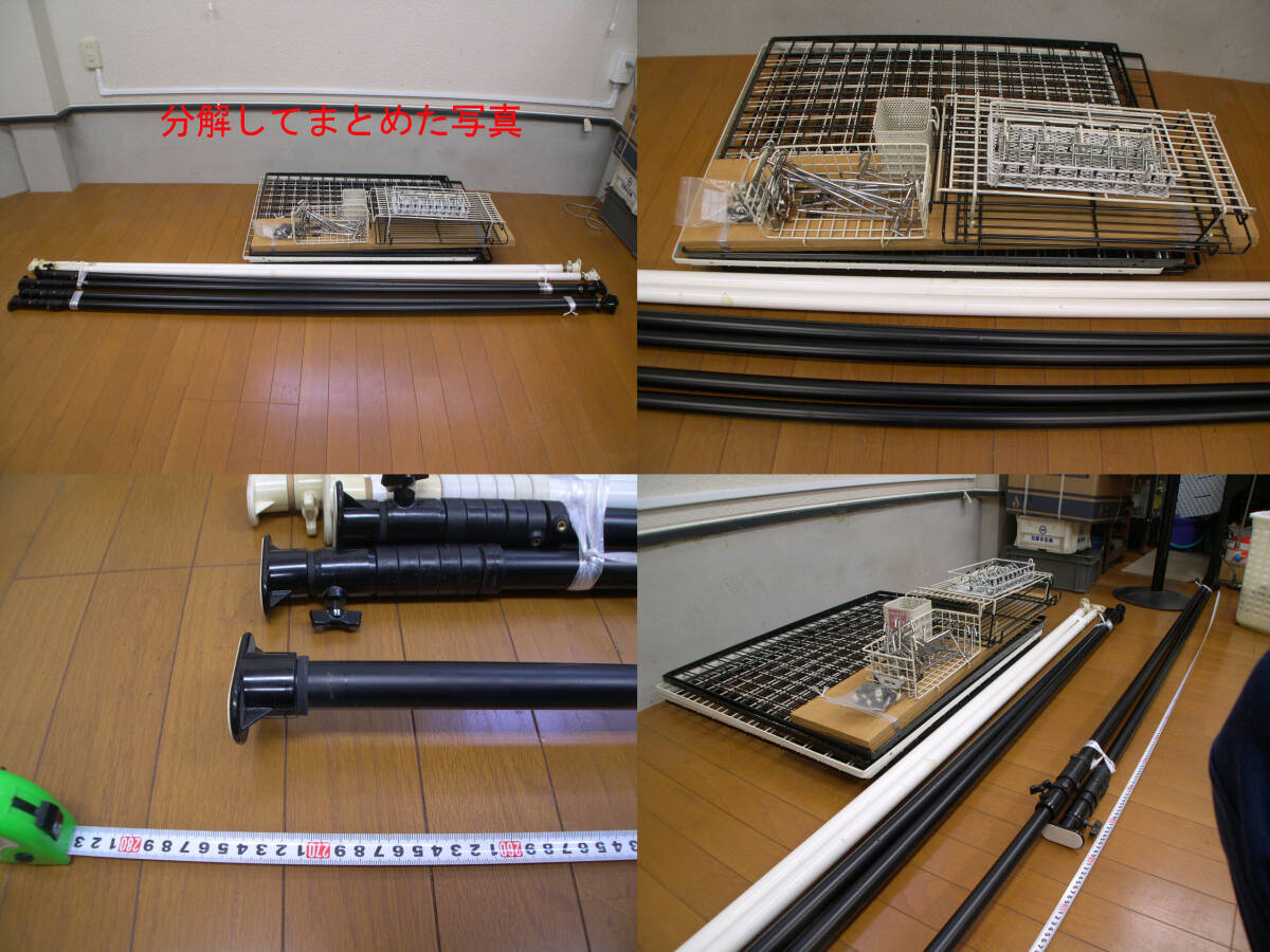 突っ張り棚 突っ張りラック 棚 伸縮棚ネット棚 部屋の3か所に取り付けていました。 和室に改造するので使わなくなりましたので、出品します。 使っていた時の状態の写真も載せておきます。 その時使っていた棚板やネット棚、引掛けて使うネットフックなどもお付けします。 突っ張り用の網部分の大きさは60Cm×80Cmで棚巾を狭くや広くして使えます。 突っ張り棒は200Cm~270Cmです。 一応外してから、写真のアルコールで、軽く汚れを拭き取ってあります。 ポールには取付時のネジ跡や穴が有ります。 長年時間の経った物なので、汚れ、傷があります。 ご理解してのご入札をお願い致します。 便宜上着払い発送にしていますが、引取限定です。 美術品などの鑑賞品ではありませんので、 完璧な綺麗さをお求めの方は、入札をお控えください。 ☆あくまでも実用品としての価値とお考えください。☆ 引取限定でのお渡しとなります。 当方喫煙無し。ペット無し。 無料アプリのGoogleドライブが入って入れば こちら でさらに多くの拡大写真をご覧頂けます。 引取限定でお願いします。 当方の場所は埼玉県富士見市です。 東武東上線志木駅又は柳瀬川駅が近いです。 目標は浦和所沢街道と川越街道の交差点から5~6キロぐらいの場所です。 車の無い方で10~20キロくらいの近い所なら運賃1000円ほどで当方が自動車で運べます。 | |