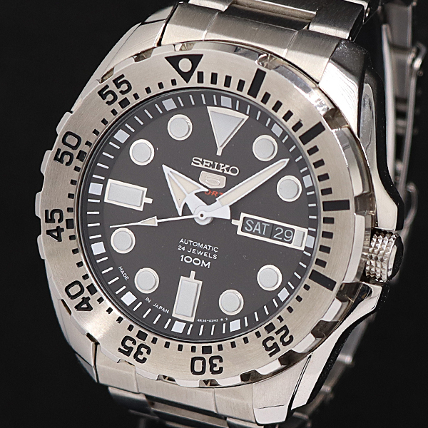 1円 稼働 良品 セイコー 海外モデル AT/自動巻 SRP599J1 ブラック文字盤 メンズ腕時計 KMR 0551100 9RET
