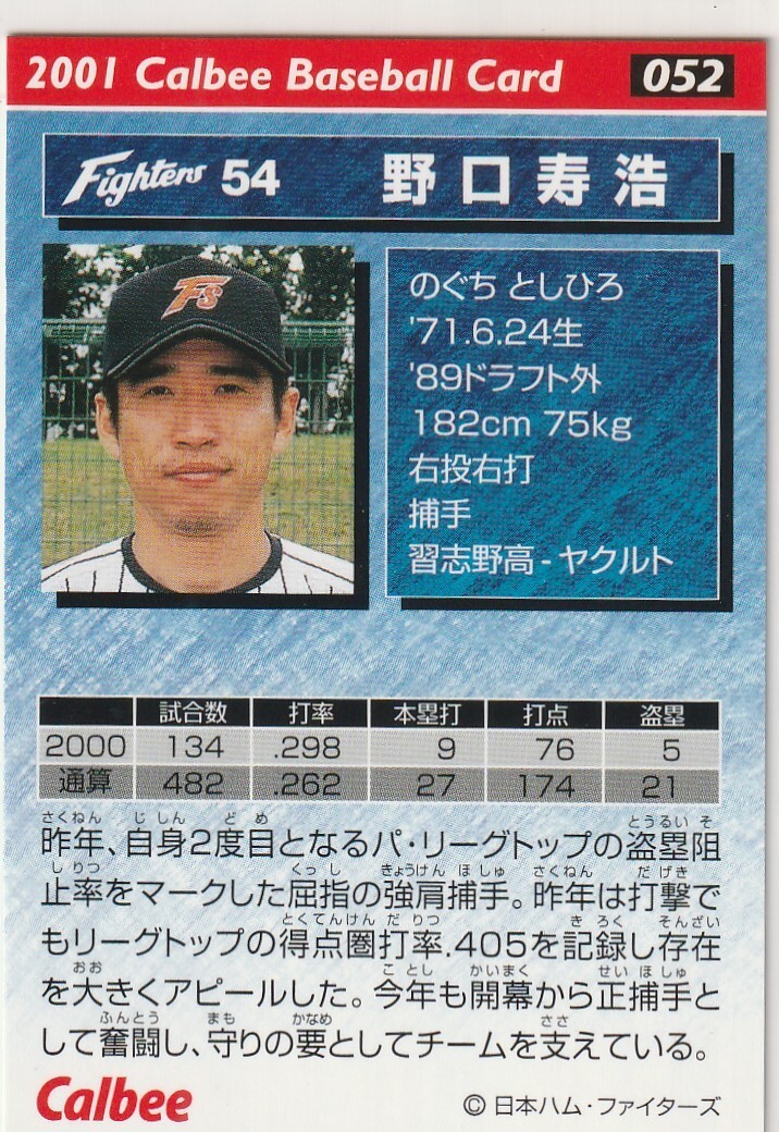 ●2001カルビー【野口 寿浩】プレ版:金箔押サインパラレル No.052:日本ハム