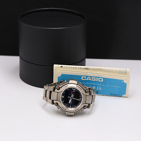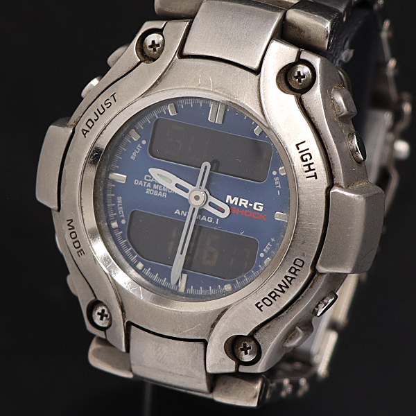 1円 保/箱付 稼働 カシオ MRG-130T MR-G QZ ブルー文字盤 メンズ腕時計 KMR 0528000 9RET KMR