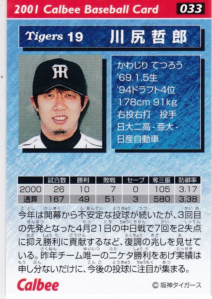 ●2001カルビー【川尻 哲郎】プレ版:金箔押サインパラレル No.033:阪神 R2