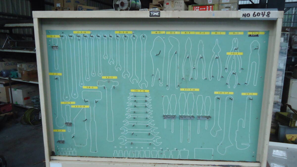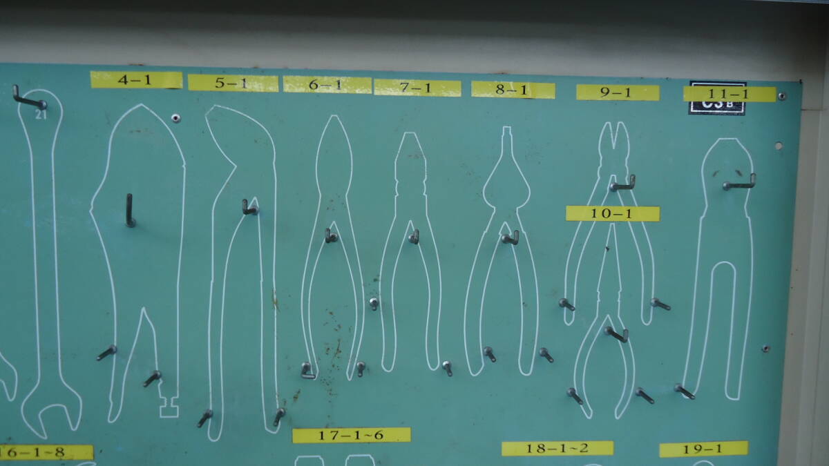 油谷 №6048 壁掛け 工具 ボード 工具収納 キャビネット 縦型 収納 手元工具 スパナ ドライバー レンチ コマ 整理整頓 修理 壁面収納 中古
