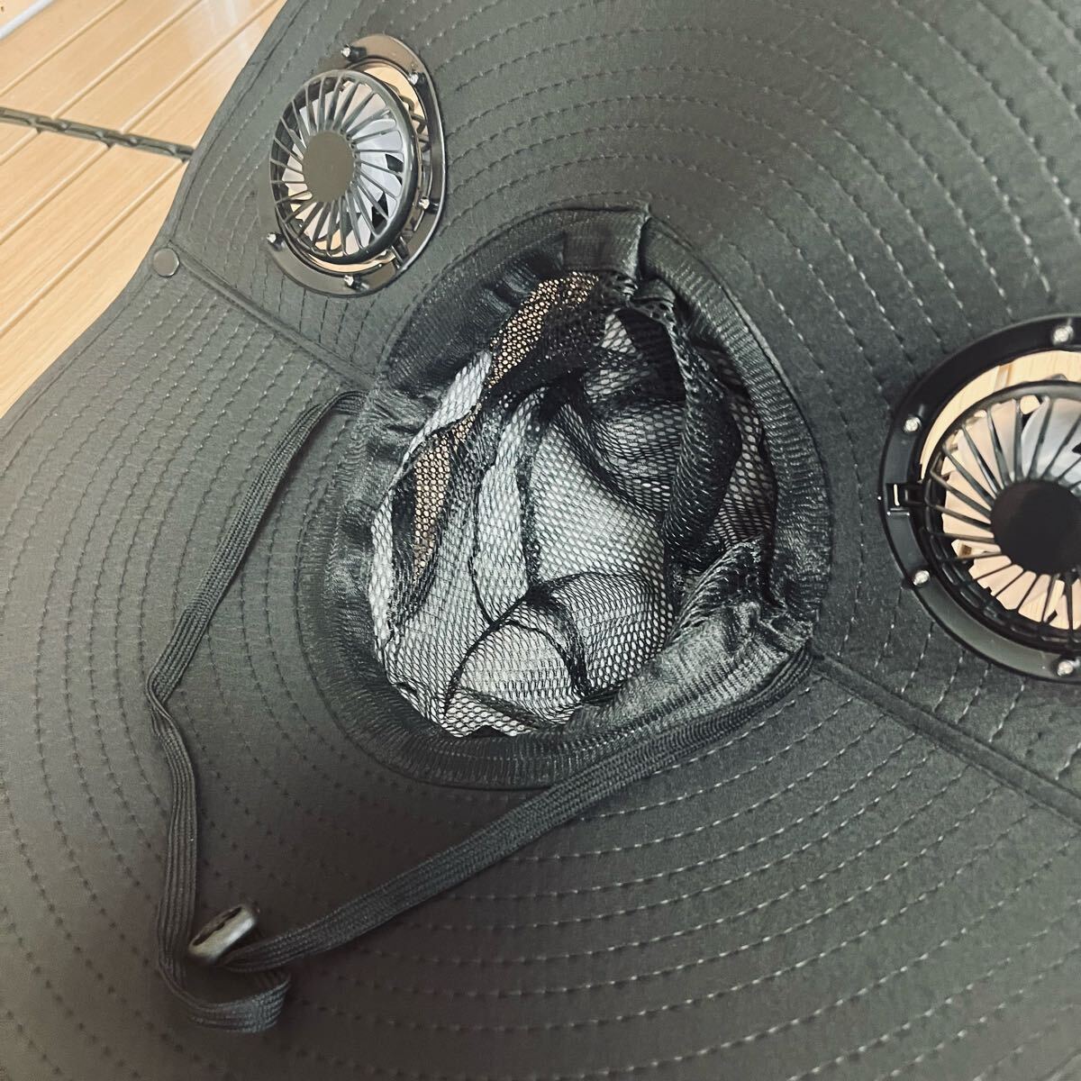 2個ファン搭載 アウトドア帽子 ソーラーとUSB充電式 猛暑対策 通気性抜群 日除け 熱中症対策 夏フェスや釣り キャップ 三段風量調節 径47cm