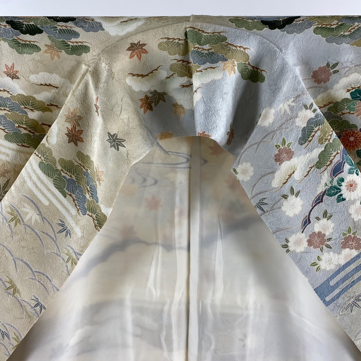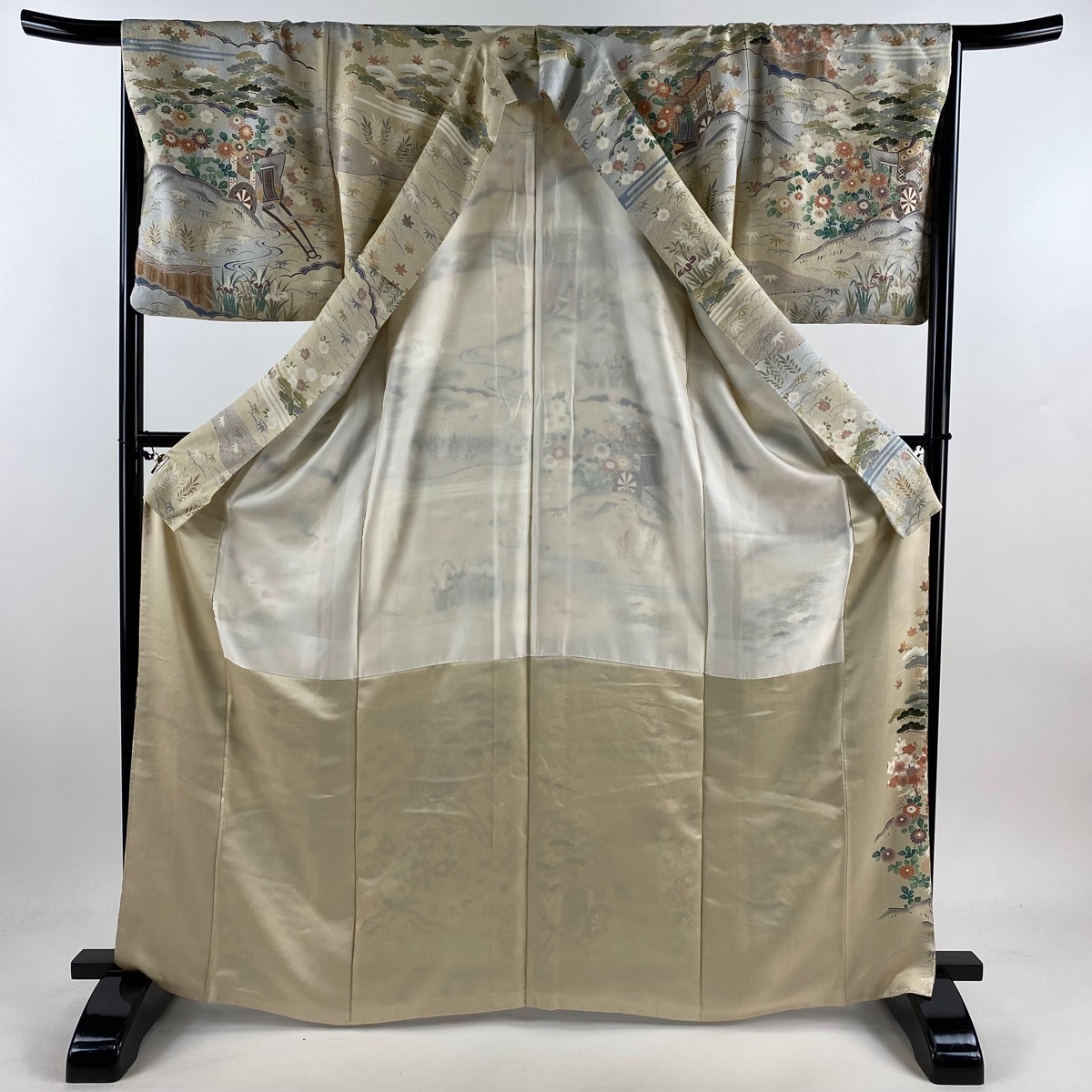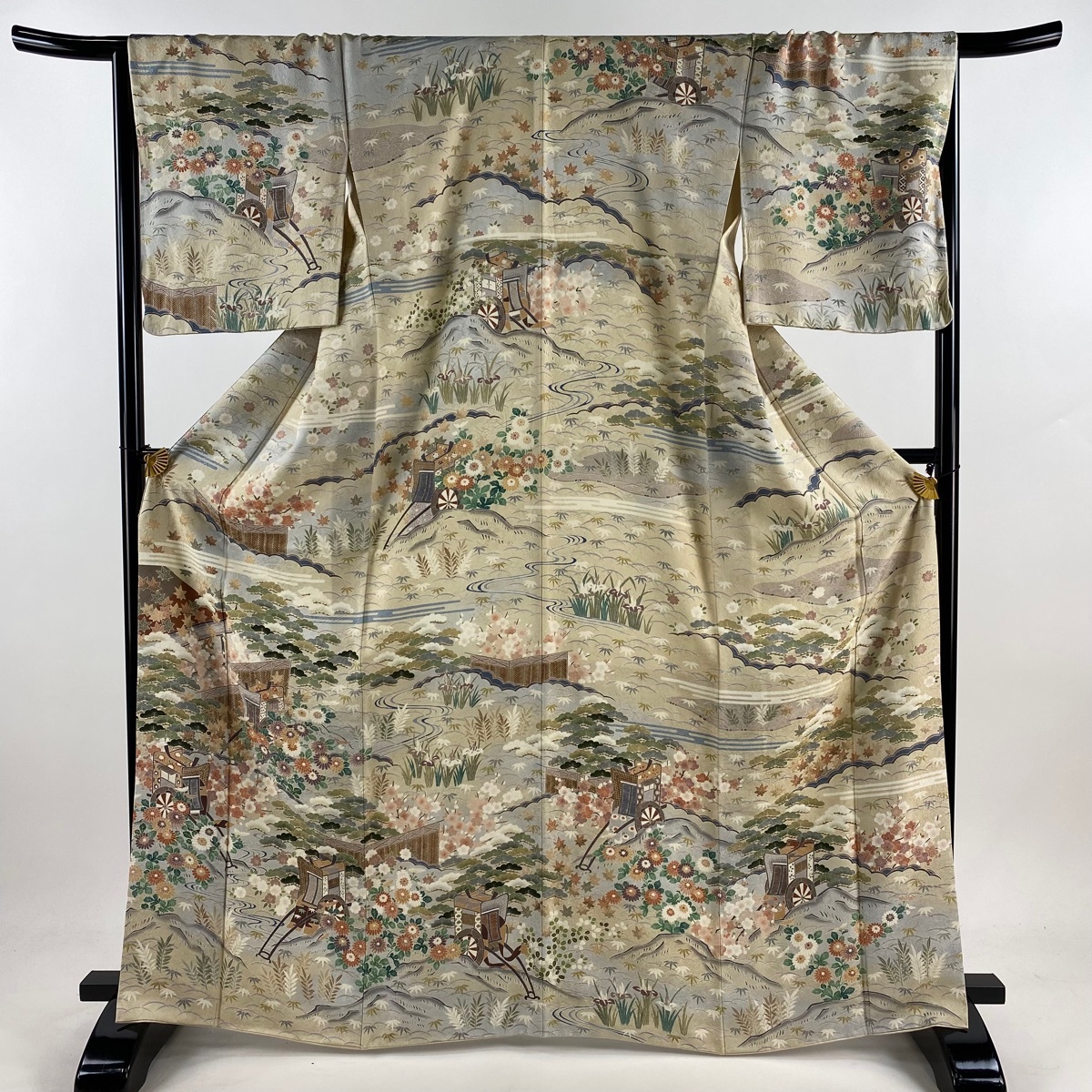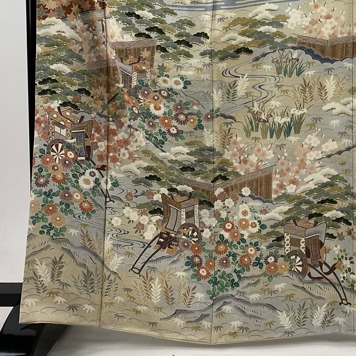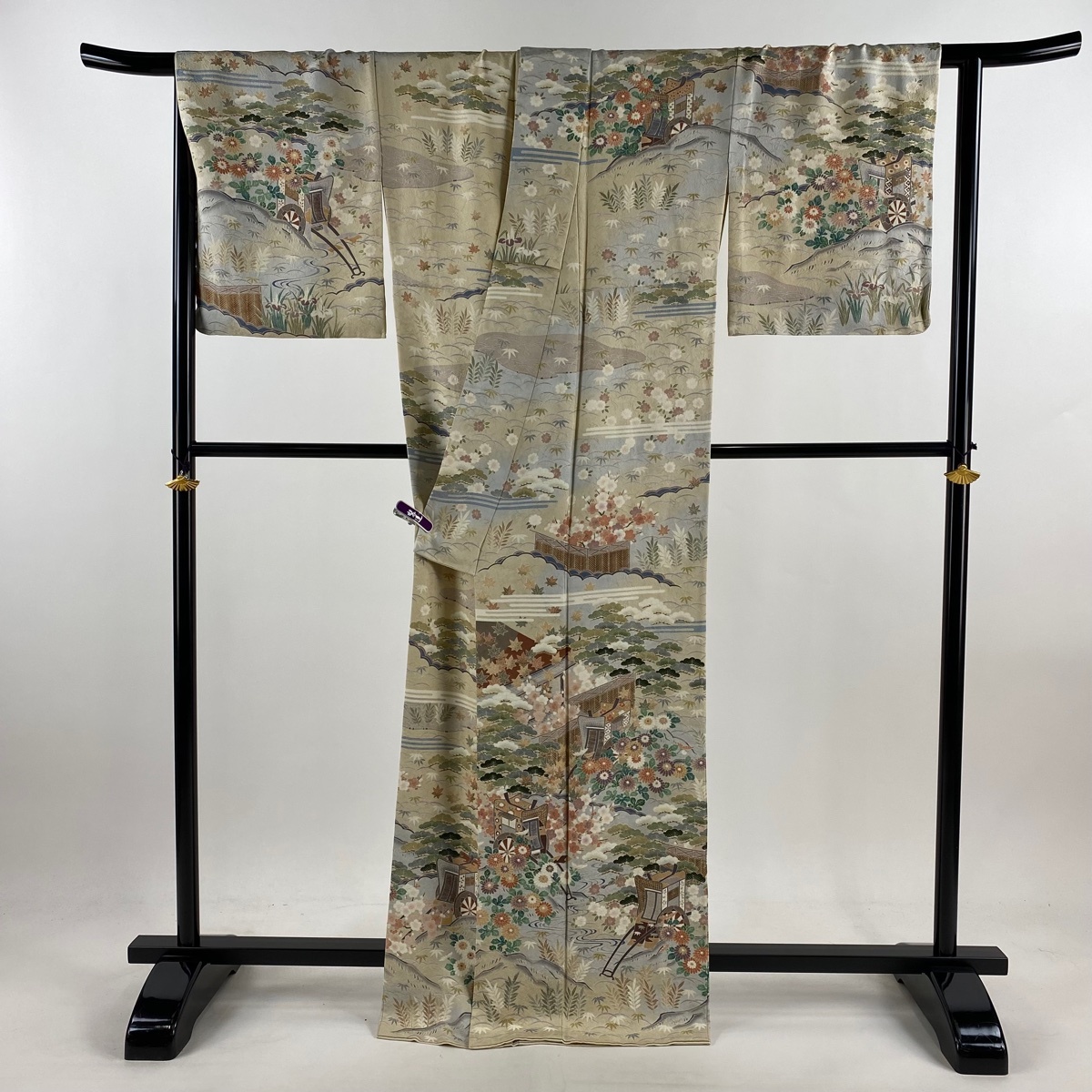 | 訪問着 美品 逸品 御所車 松竹梅 ぼかし 灰茶 袷 身丈166.5 裄丈66.5 M 正絹 【中古】 |
