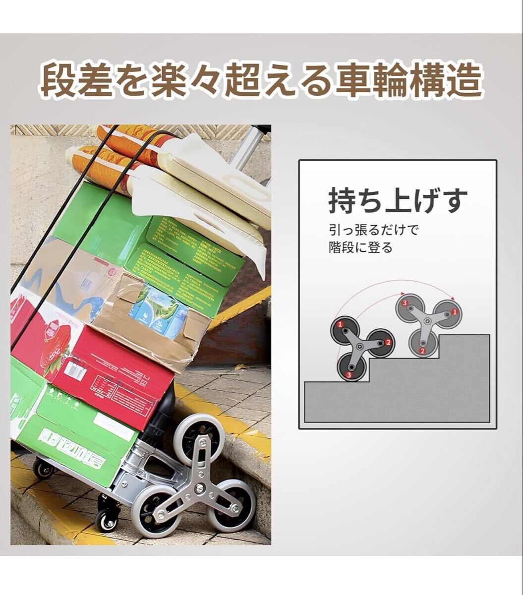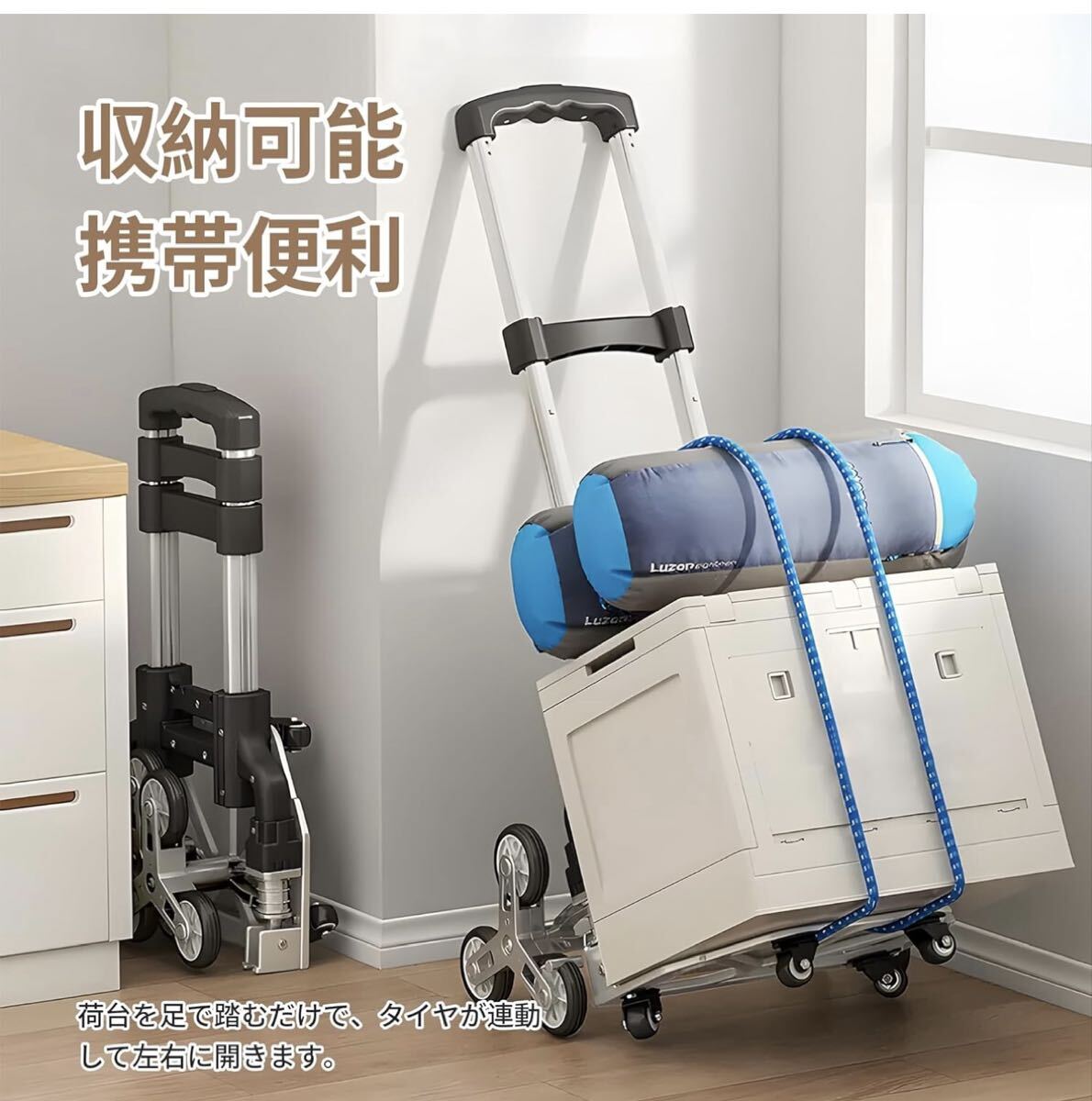 階段登れる 10輪ある】キャリーカート台車 コンパクト折りたたみ式 階段登れる台車 業務用ハンドトラックキャスター 階段昇降 軽量 折畳み 片手高さ調整でき 静音 防水収納袋 ゴムロープ両端フック付 荷物運搬 業務用キャリーカート 耐荷重80kg 【階段昇降&超安定】 本台車は合計10の車輪がある。後輪は6つの車輪のサイクルで、持ち上げずに引っ張るだけで階段もラクラク移動できます。常に4つの車輪が地面に接しで、安定性抜群で、実際よりも荷物が軽く感じられる。前輪は転がりに優れた360°小型タイヤを採用し、後輪をスムーズにアシストし、静穏性と耐久性を高次元でキープします。
