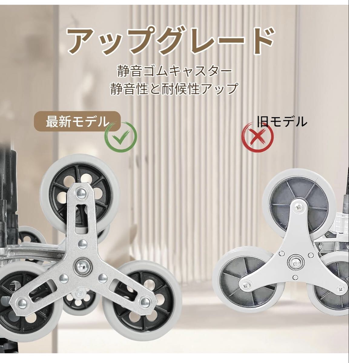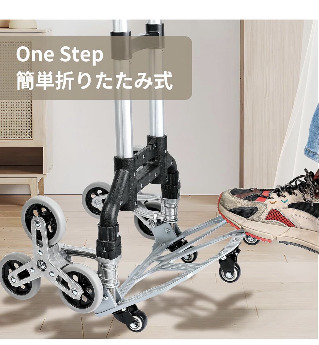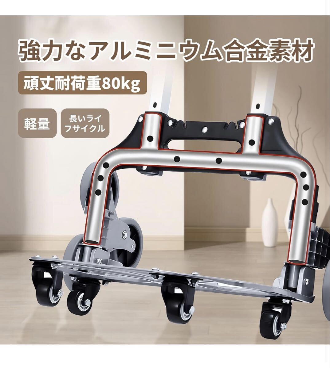 【頑丈静音&耐荷重80kg】この階段キャリーカートの回転部分は特殊な強化構造を使用し、より大きな衝撃と長時間の荷重に耐えられます。アルミ製の金属芯は、サビなどの腐食に対し強い耐性を持っています。本体の重さは約4.2キロですが、耐荷重は80キロもあります。(階段昇降の際は40キロ)