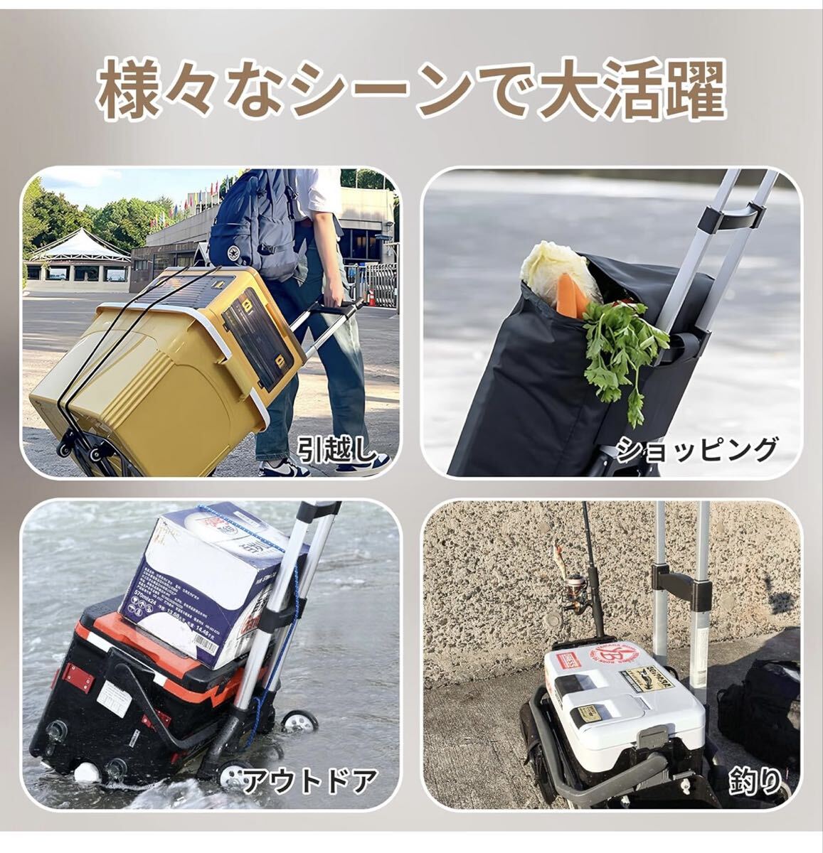 【バッグ付け& 大活躍】大容量収納袋付き、持運び収納一体、日常生活用品購入時に最適。(折り畳みで車に置いて)駐車上から家までの運搬など、釣り、引っ越し、旅行、運動会、バーべーキュー、キャンプなどのアウトドアシーンでも大活躍。重い荷物を簡単に運ぶことができる~