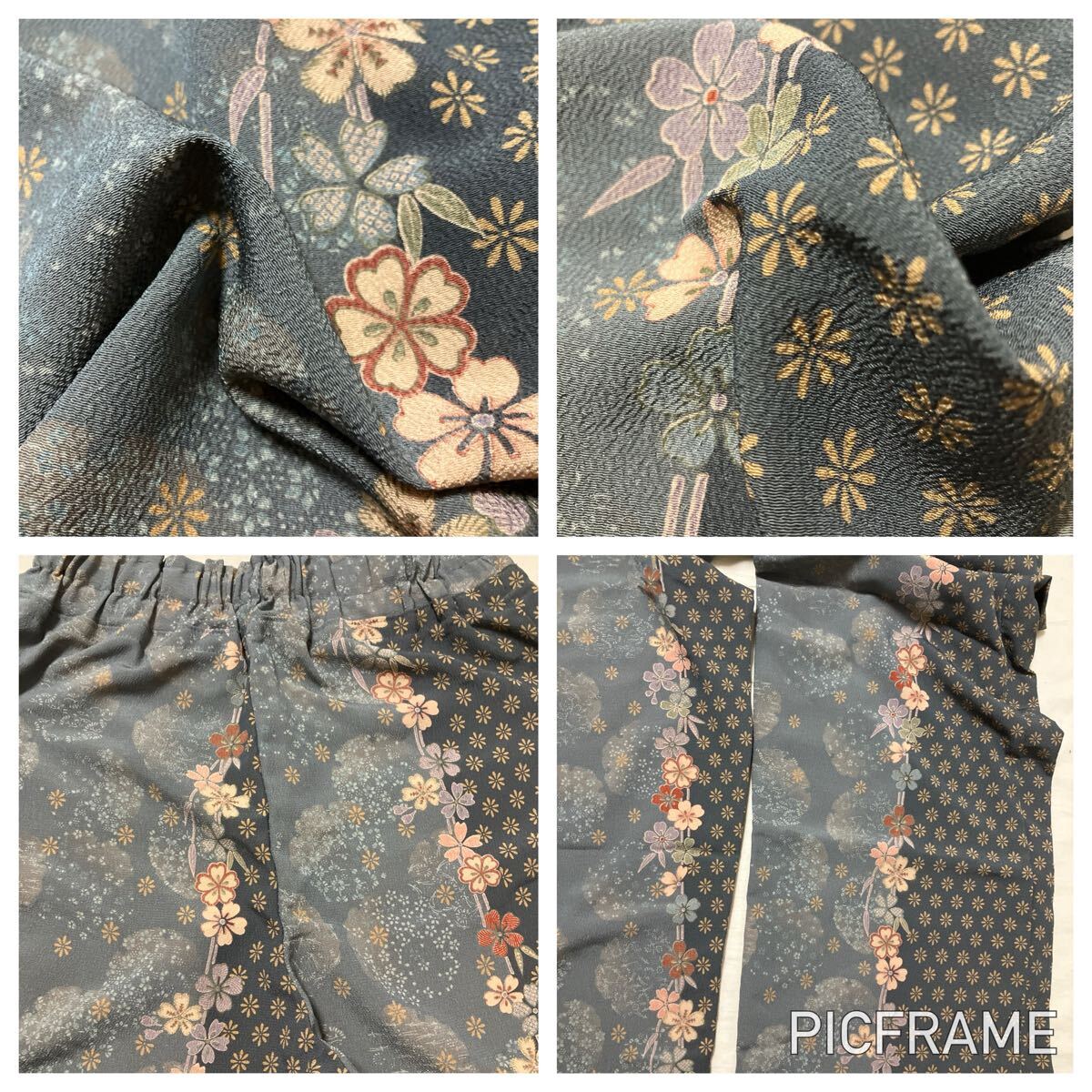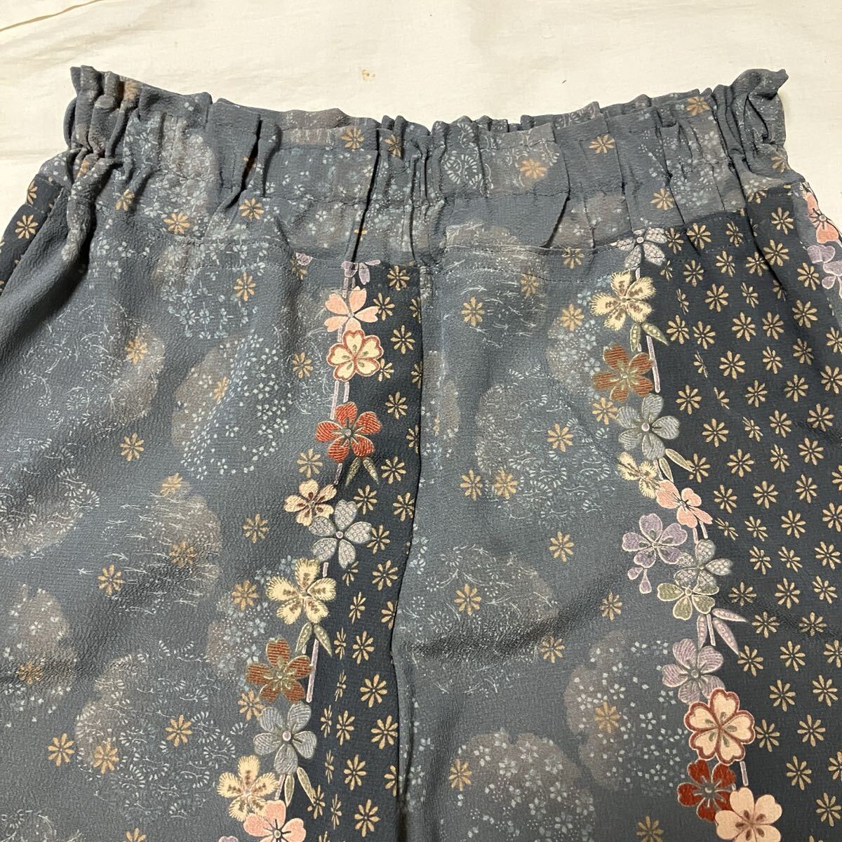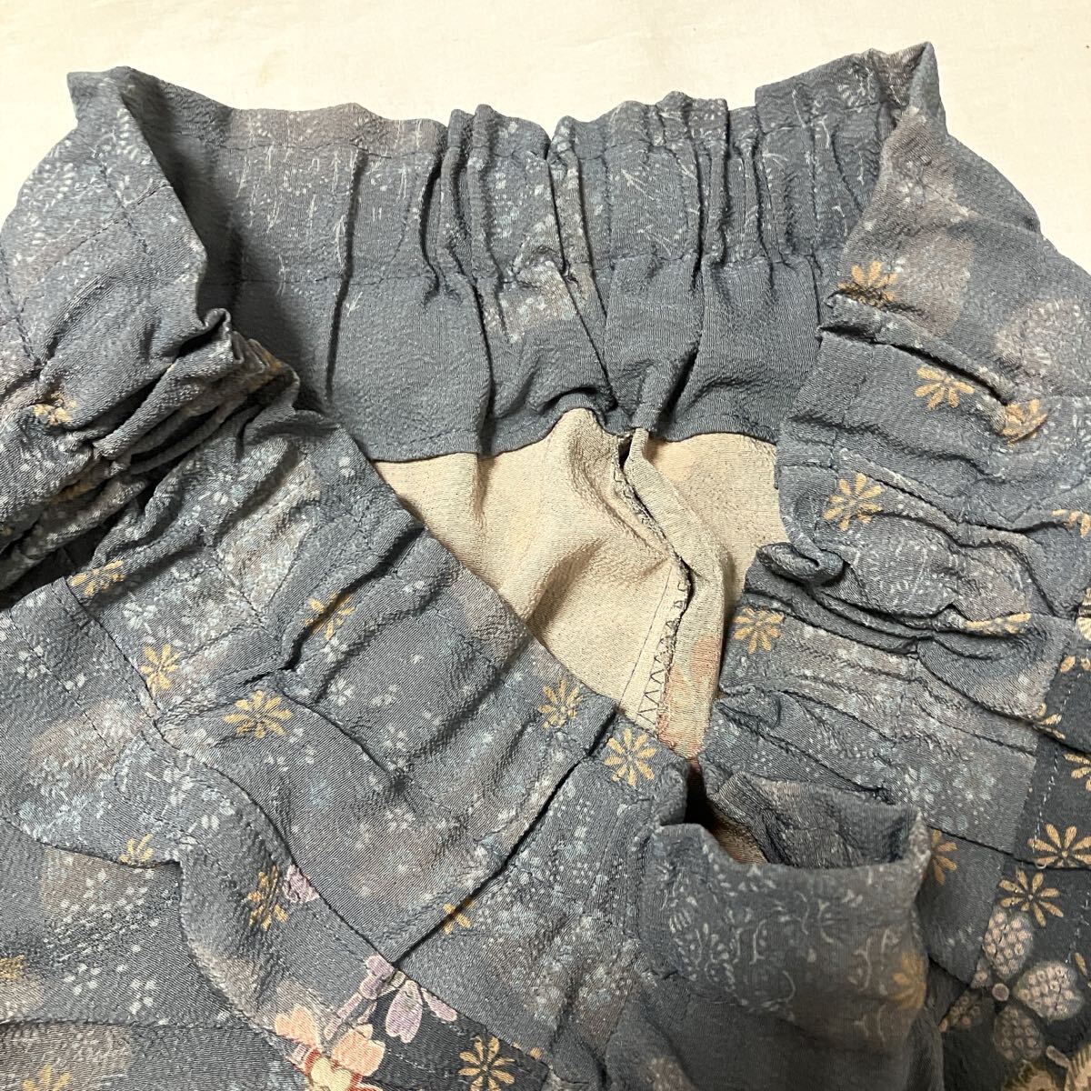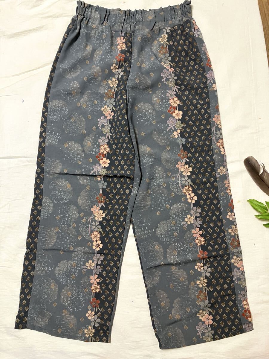#プレゼント #誕生日 #母の日 #父の日 #手作り #ハンドメイド #バレンタイン #ホワイトデー #手芸 #ホームソーイング #パンツ #着物リメイク #シルク #ウエストゴム #フリーサイズ #M #L #正絹 #友禅 #手描き #花柄 #花輪 #桜 #ちりめん #縮緬 #