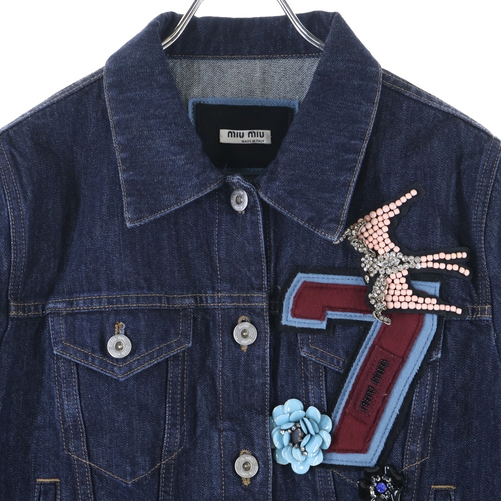 miumiu (ミュウミュウ) アップリケビーズ刺〓デニムジャケット インディゴブルー レディース GWB032 1PGW