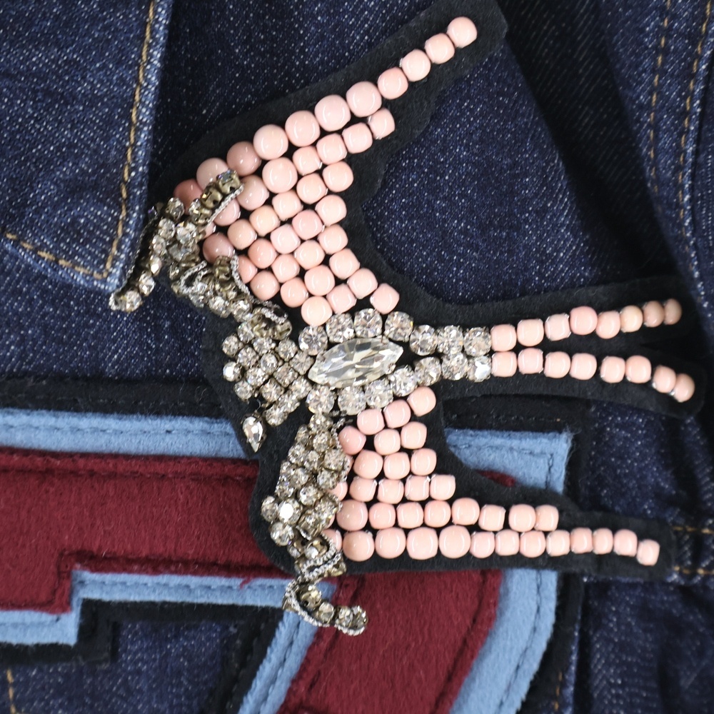 品名アップリケビーズ刺〓デニムジャケット インディゴブルー レディース GWB032 1PGW