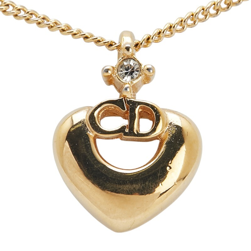 ディオール CDロゴ ペンダントネックレス ゴールド メッキ ラインストーン レディース Dior 【中古】
