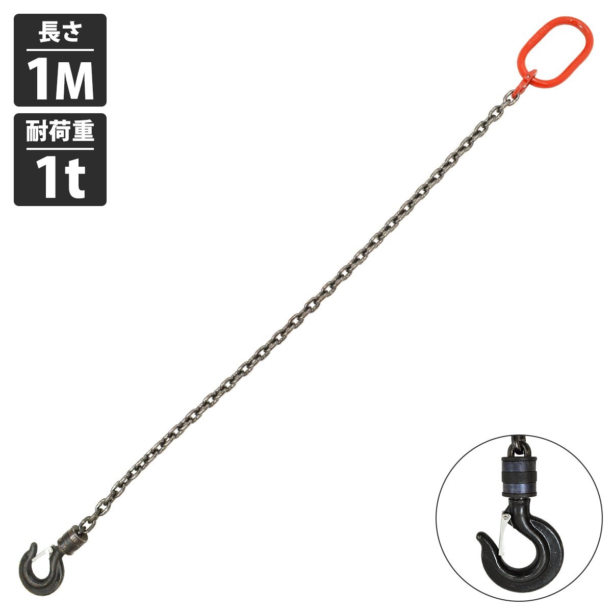 [ 1t 1M ]1本吊り チェーンスリング 吊り スリング チェーン 回転フックタイプ リンツ付き 径6mm 長さ 1m 耐荷重 1t 1000kg