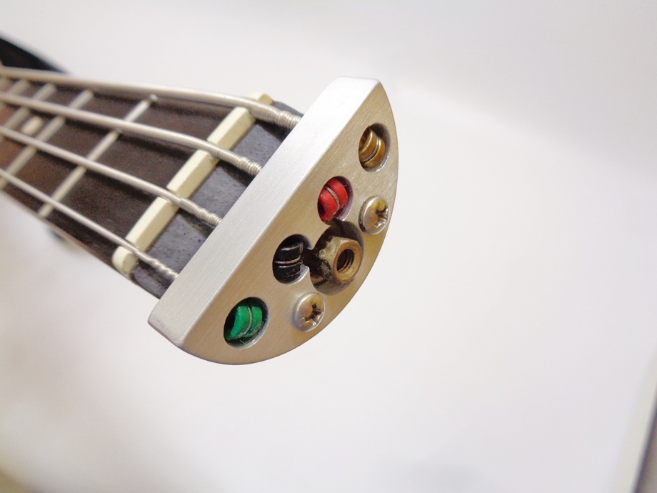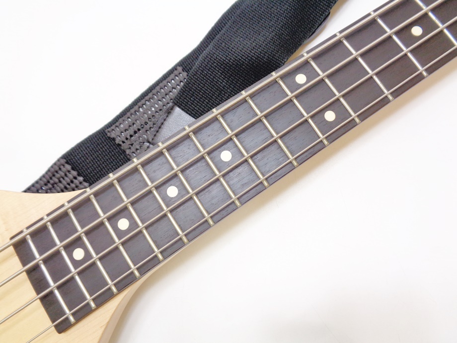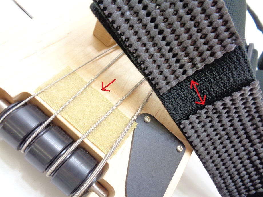 綺麗なベースではありますが、ボディ裏面の弦が通る部分にマジックテープのループ面(柔らかい面)が貼られています。