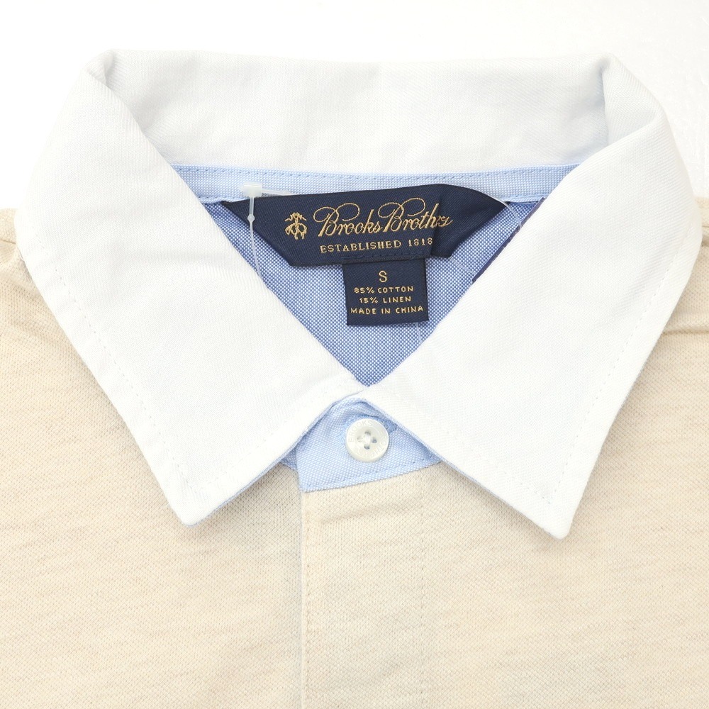 【未使用】ブルックスブラザーズ Brooks Brothers コットンリネン 長袖ポロシャツ ベージュxホワイト【サイズS】