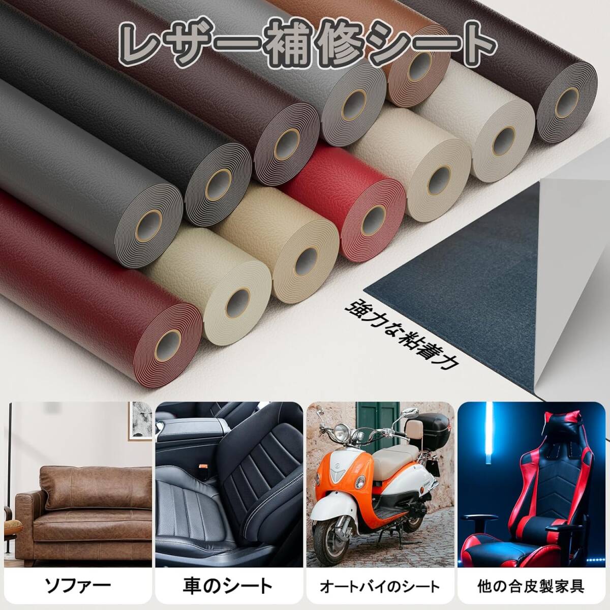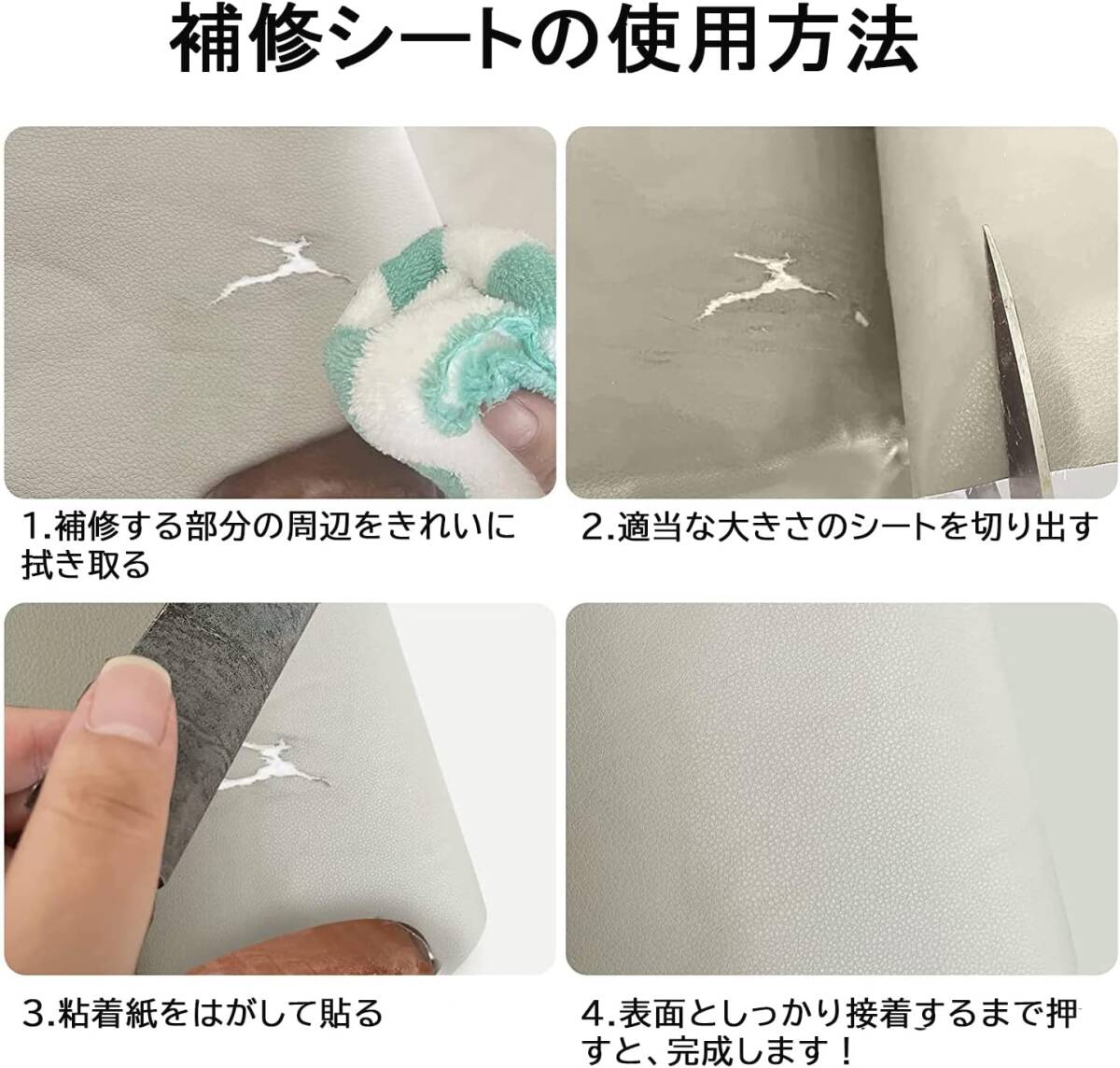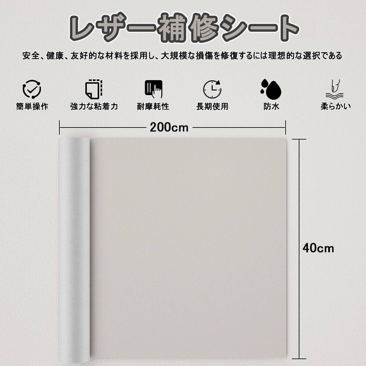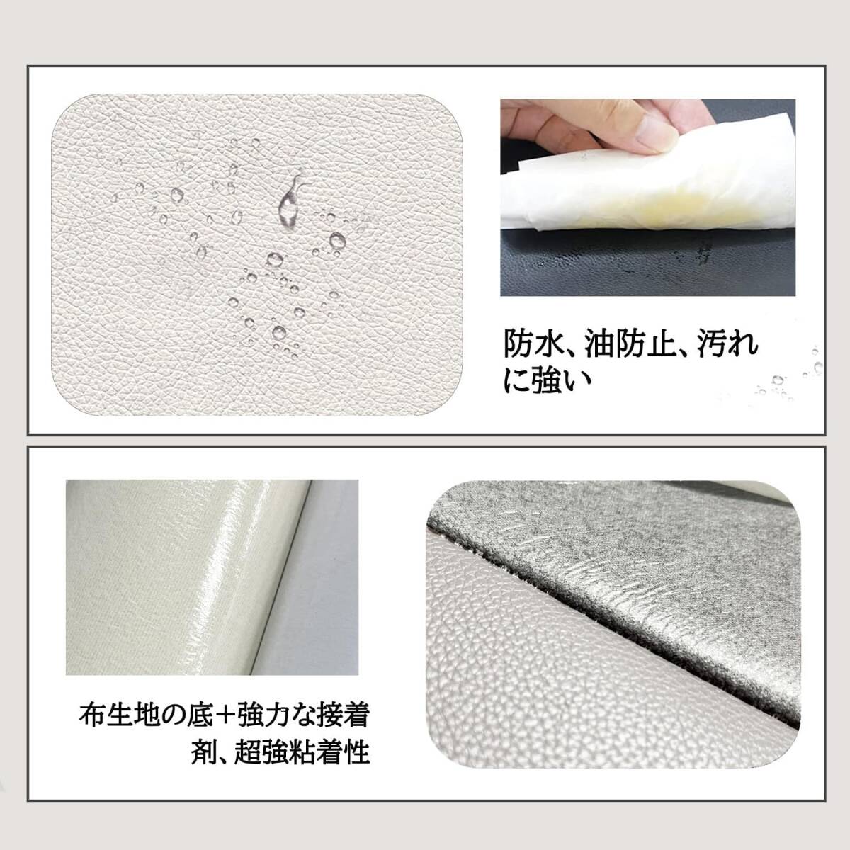 ホワイト色 Ahialstue 合皮シート 補修シート 大判40cm×200cm レザーシート 補修 PVC製 革 粘着付き合皮シート ソファー 車