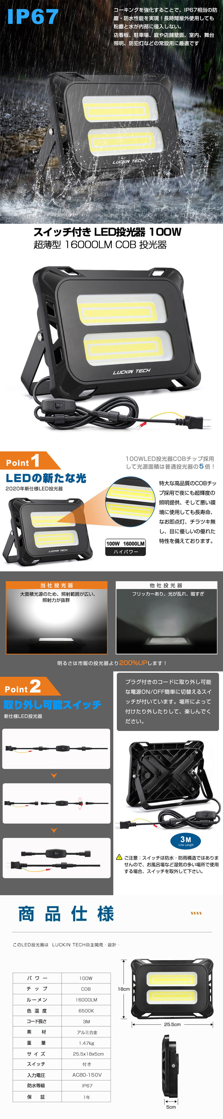 進化版 100W LED投光器 漸く登場!新仕様 100W LED投光器!