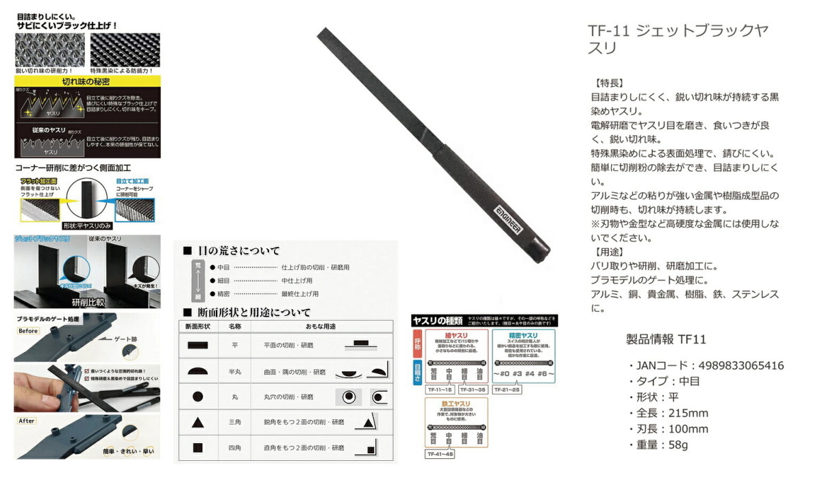 ENGINEER ジェットブラックヤスリ(平)中目 TF-11
