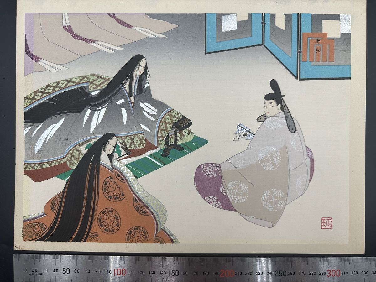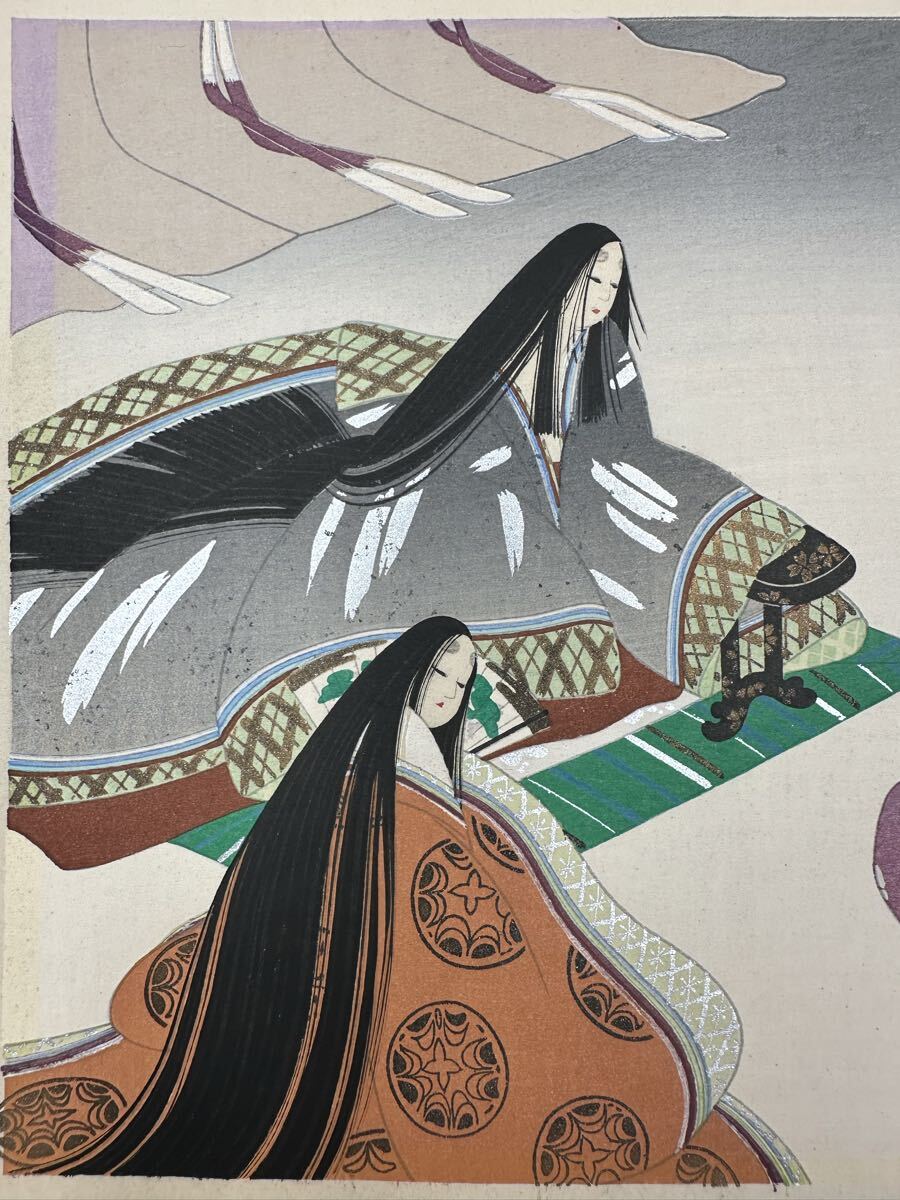 【真作】大正期 浮世絵木版画 海老名正夫「源氏物語 御法」美人画 大判 錦絵 保存良い