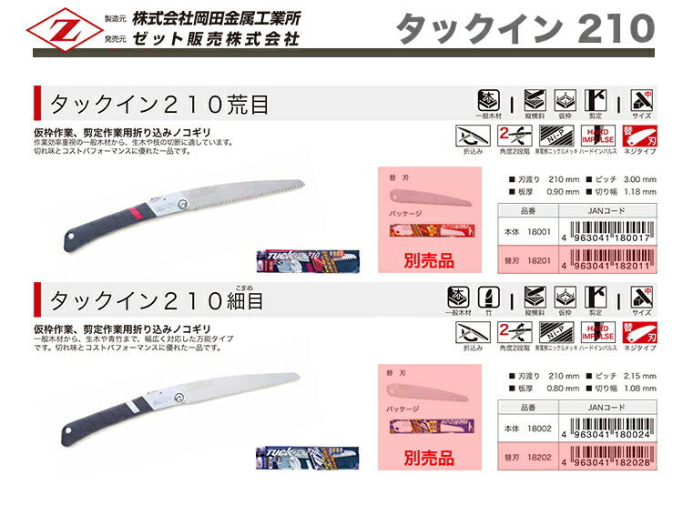 岡田金属工業所/ゼットソー タックイン 210 荒目本体 18001