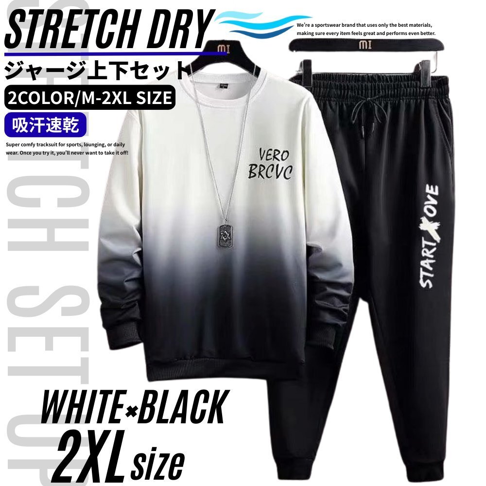 セットアップ上下 メンズ ルームウェア スポーツウェア ジャージ上下 長袖 長ズボン 速乾 通気性 シワになりにくい ホワイト 2XL