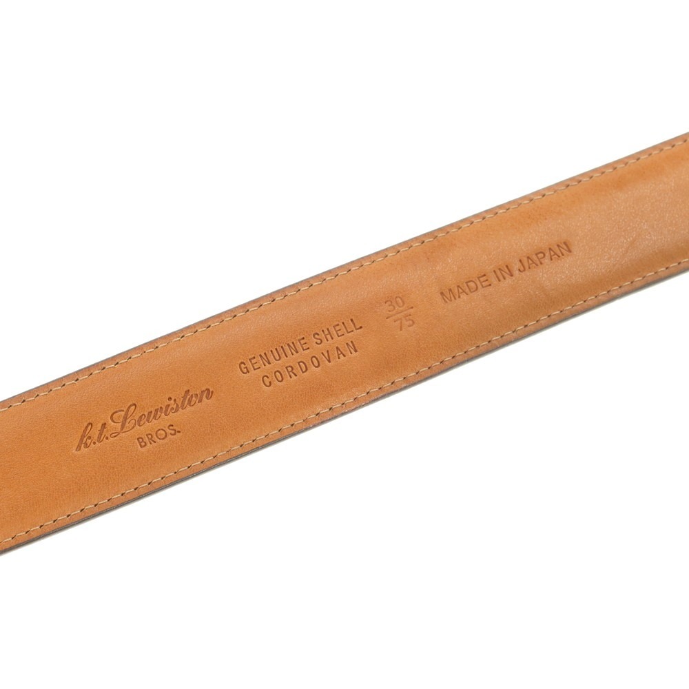 シェルコードバンを贅沢に用いたベルトです。使うほどに風合いと光沢感を増す素材になりまして、ビジネスシーンでも使いやすいシンプルなデザインに仕上げています。是非シェルコードバンの靴と合わせていただきたい一本です。