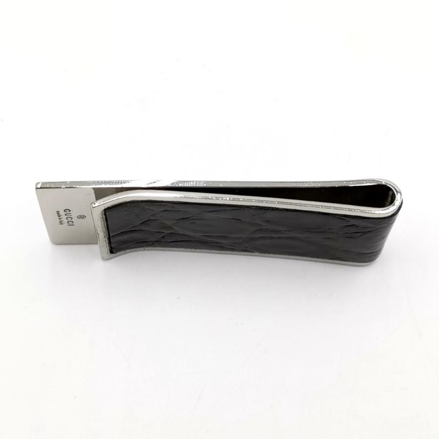 送料無料 美品 グッチ GUCCI マネークリップ レザー クロコ型押し 伊製 イタリア製 ダークブラウン系 メンズ