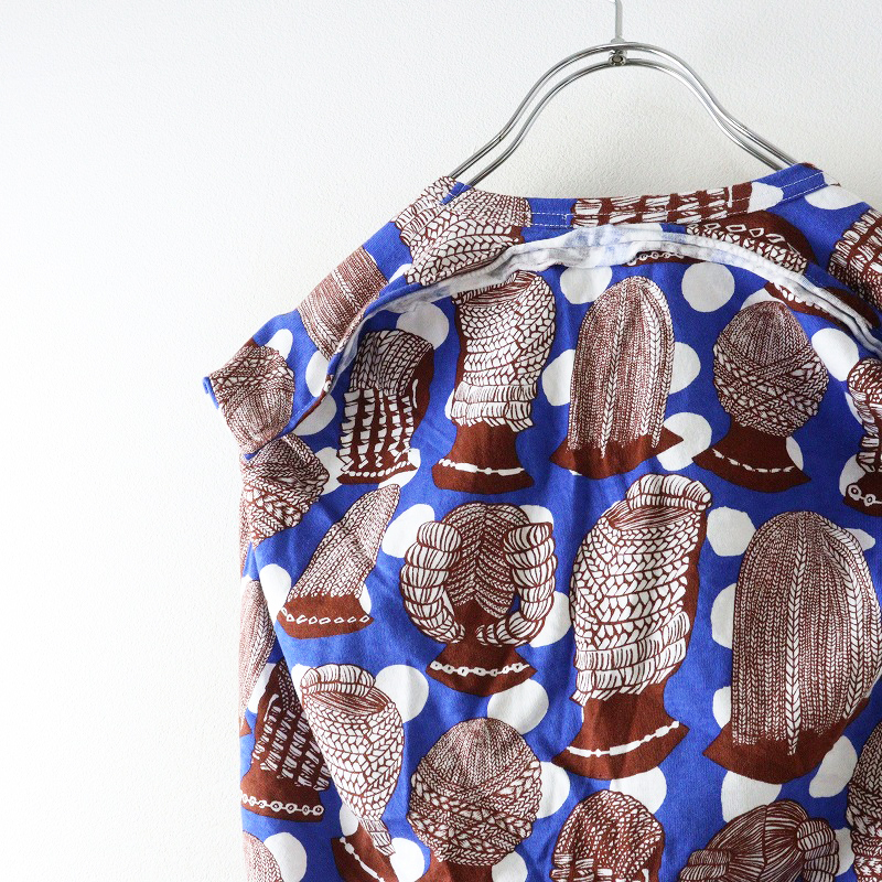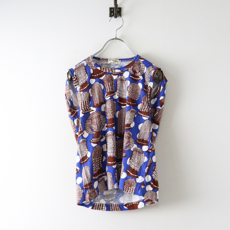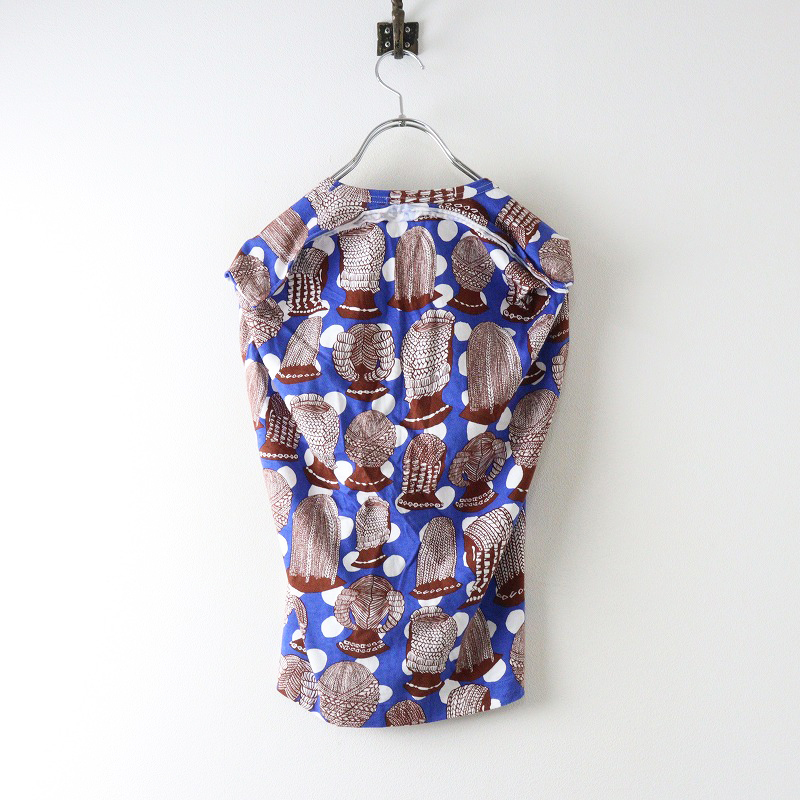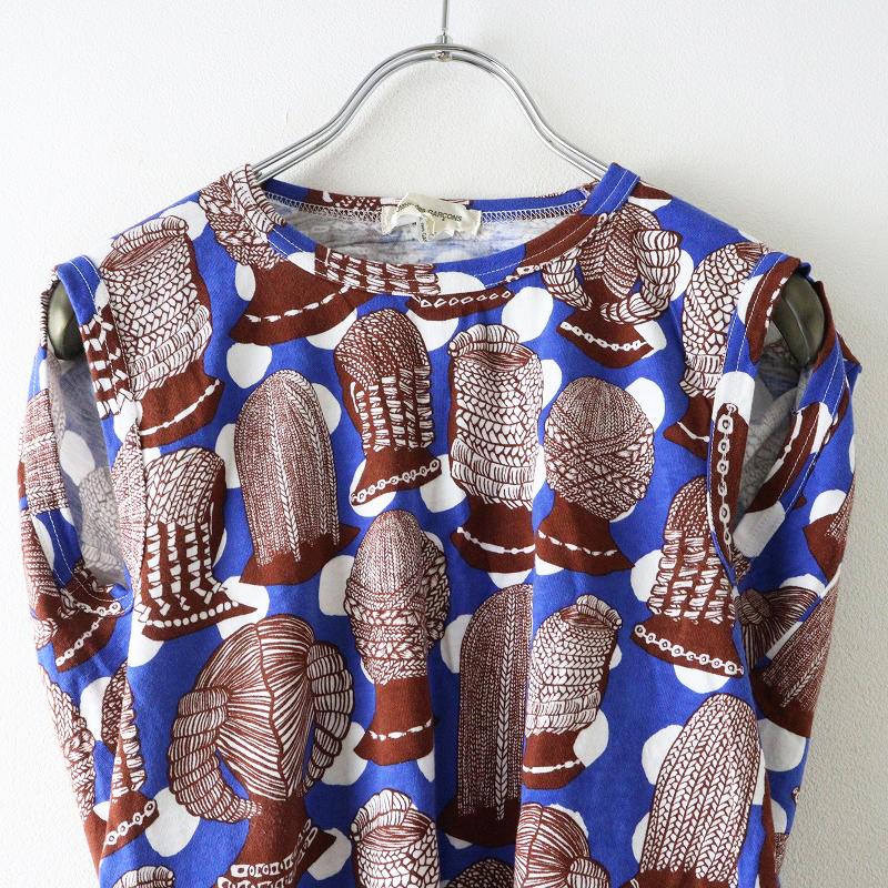 AD2007 コムデギャルソン COMME des GARCONS アフリカンヘアスタイルプリントノースリーブカットソー S\ブルー【2400014605198】
