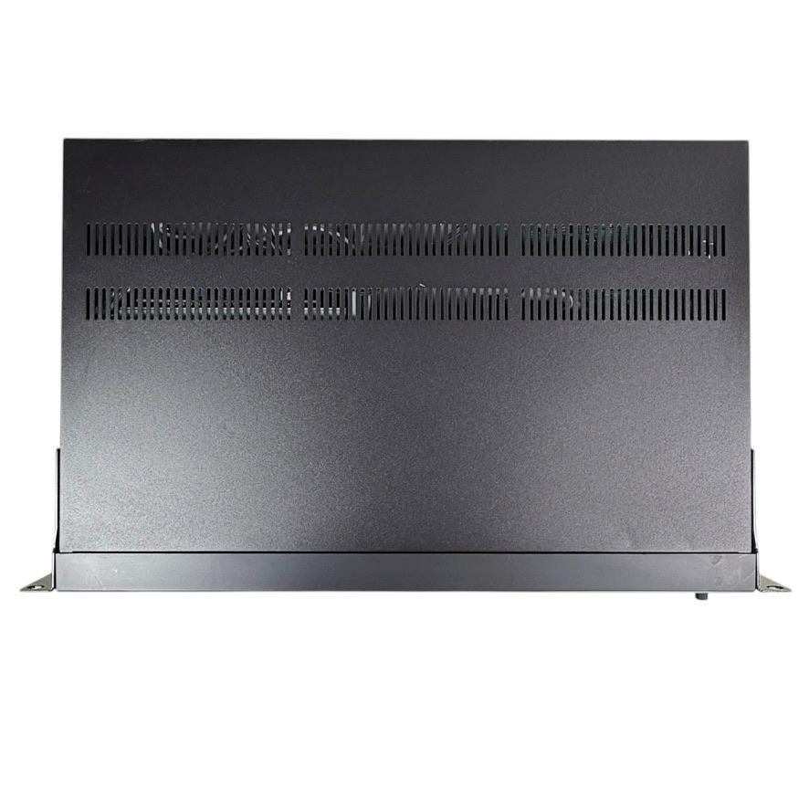 本体外観は、正面に僅かな小傷やINPUTノブに白で書き込みや正面下部に目立つ傷(写真2,3,5参照)、天面に多少の小傷や僅かな凹み(写真6参照)、側面にステーを含め多少の傷(写真4,5参照)、後部に目立つ傷(写真7,8参照)などございますが、動作に影響はございません。