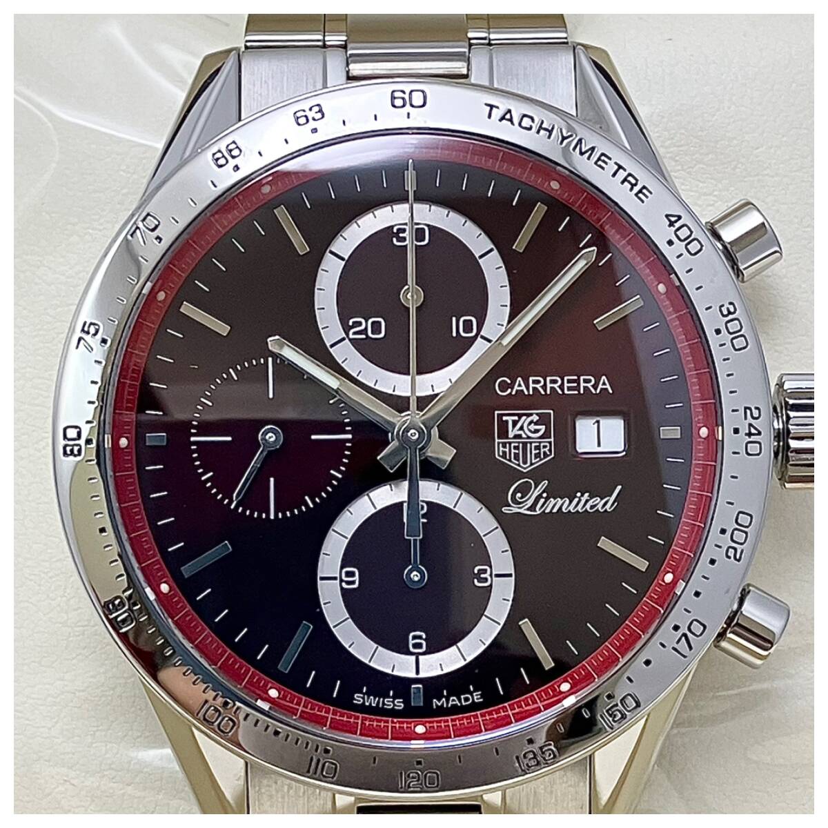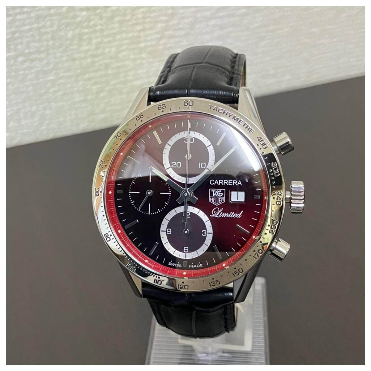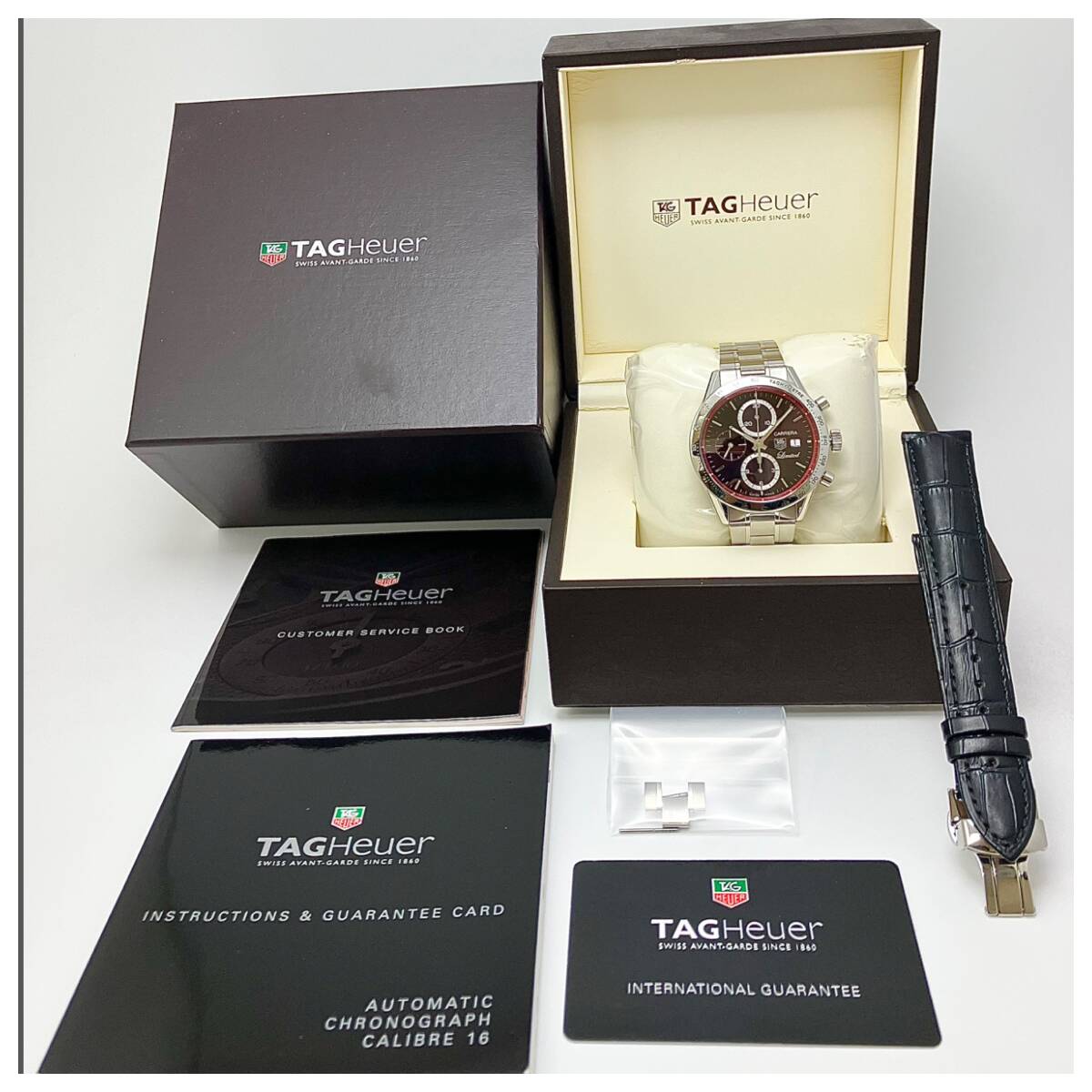 付属品全部、ベルト2種付き☆OH済み極美品のタグホイヤー時計カレラ・エレガンス・日本限定・パッションレッド盤☆キャリバー16☆CV201D