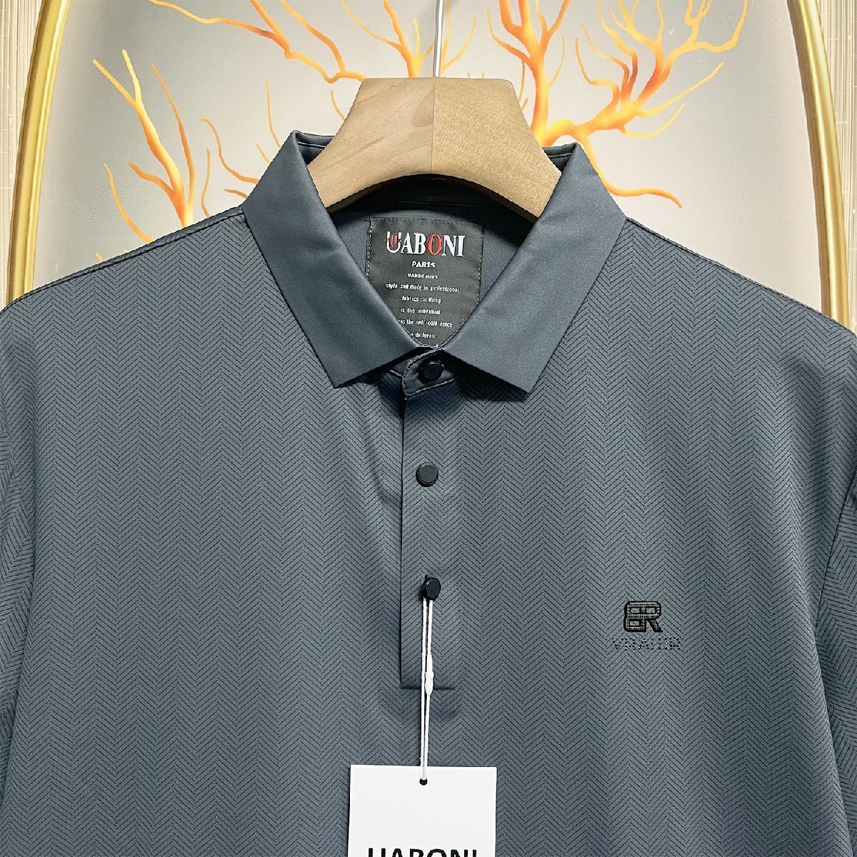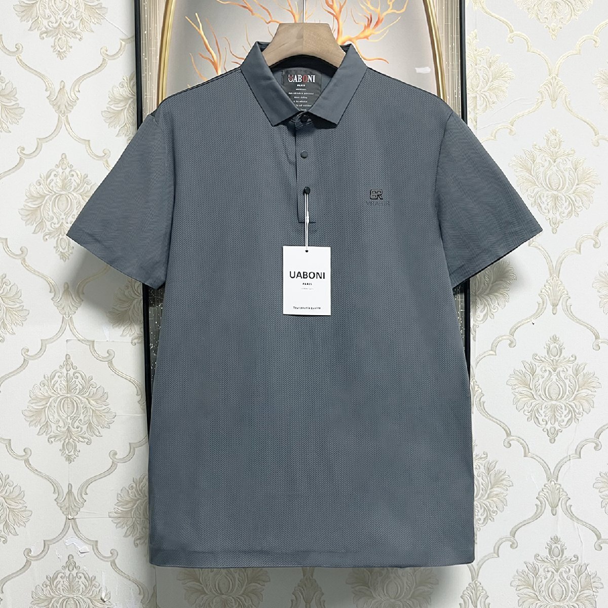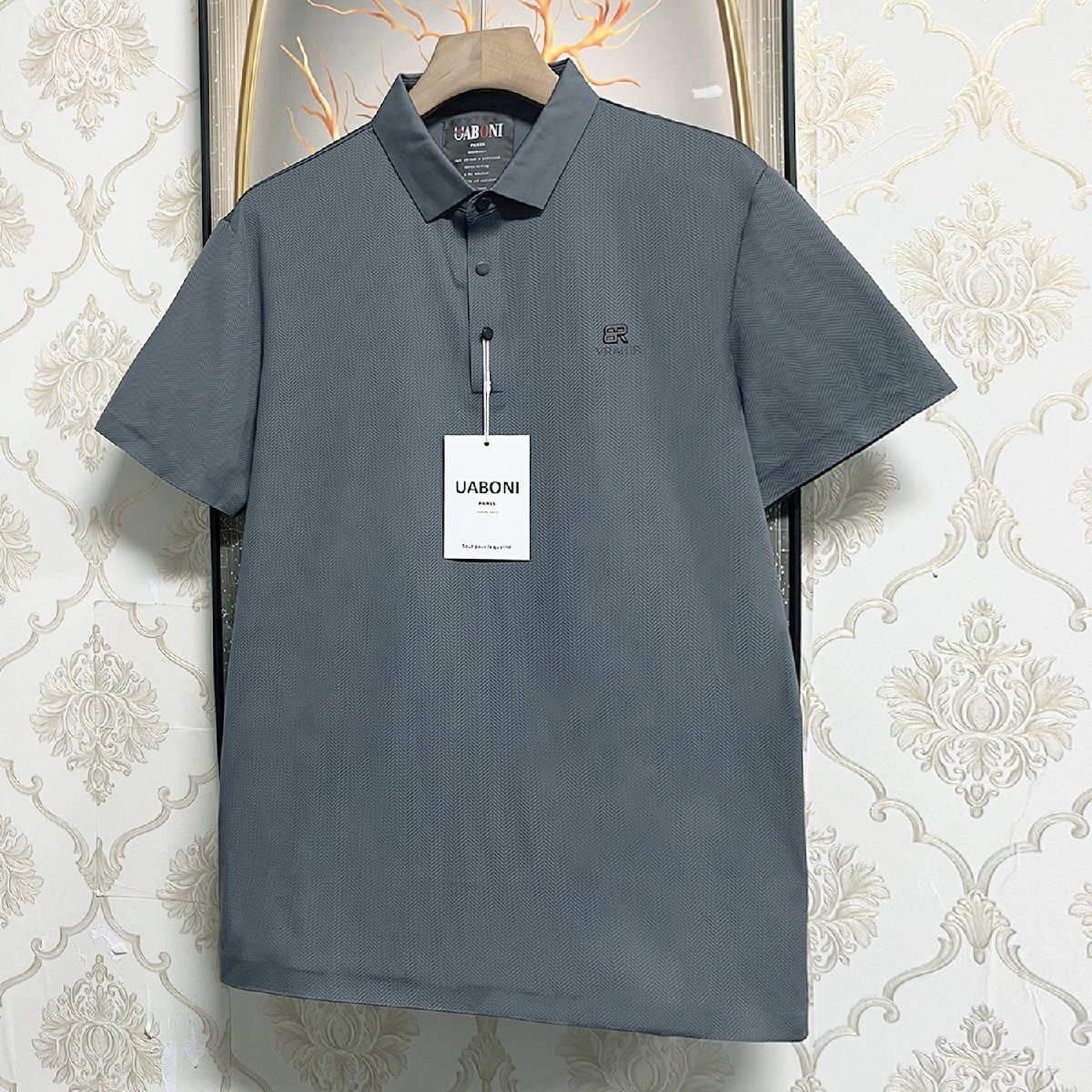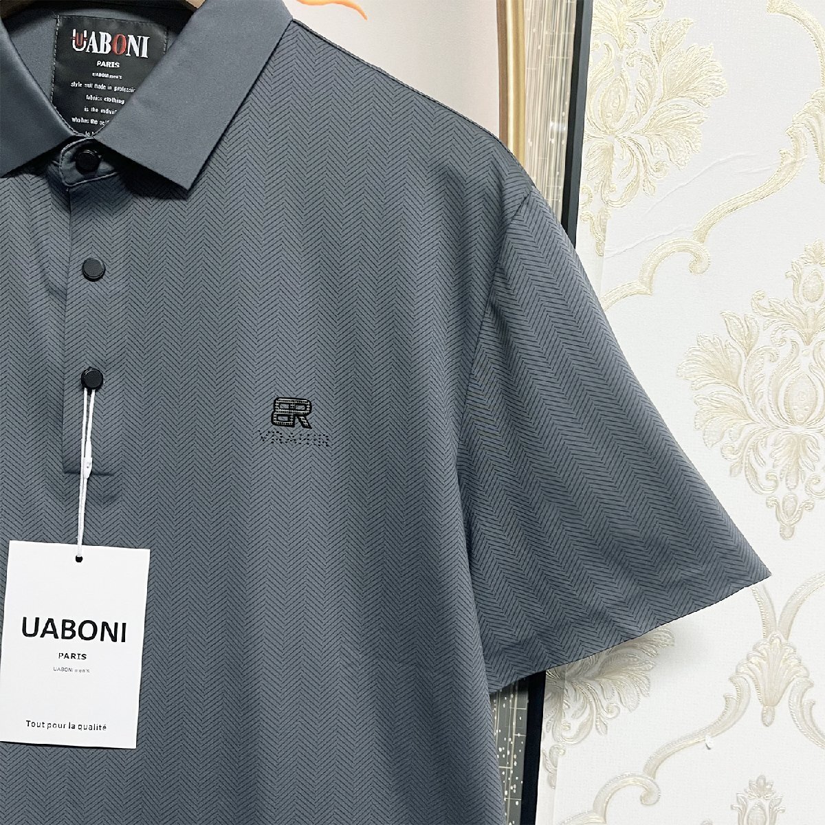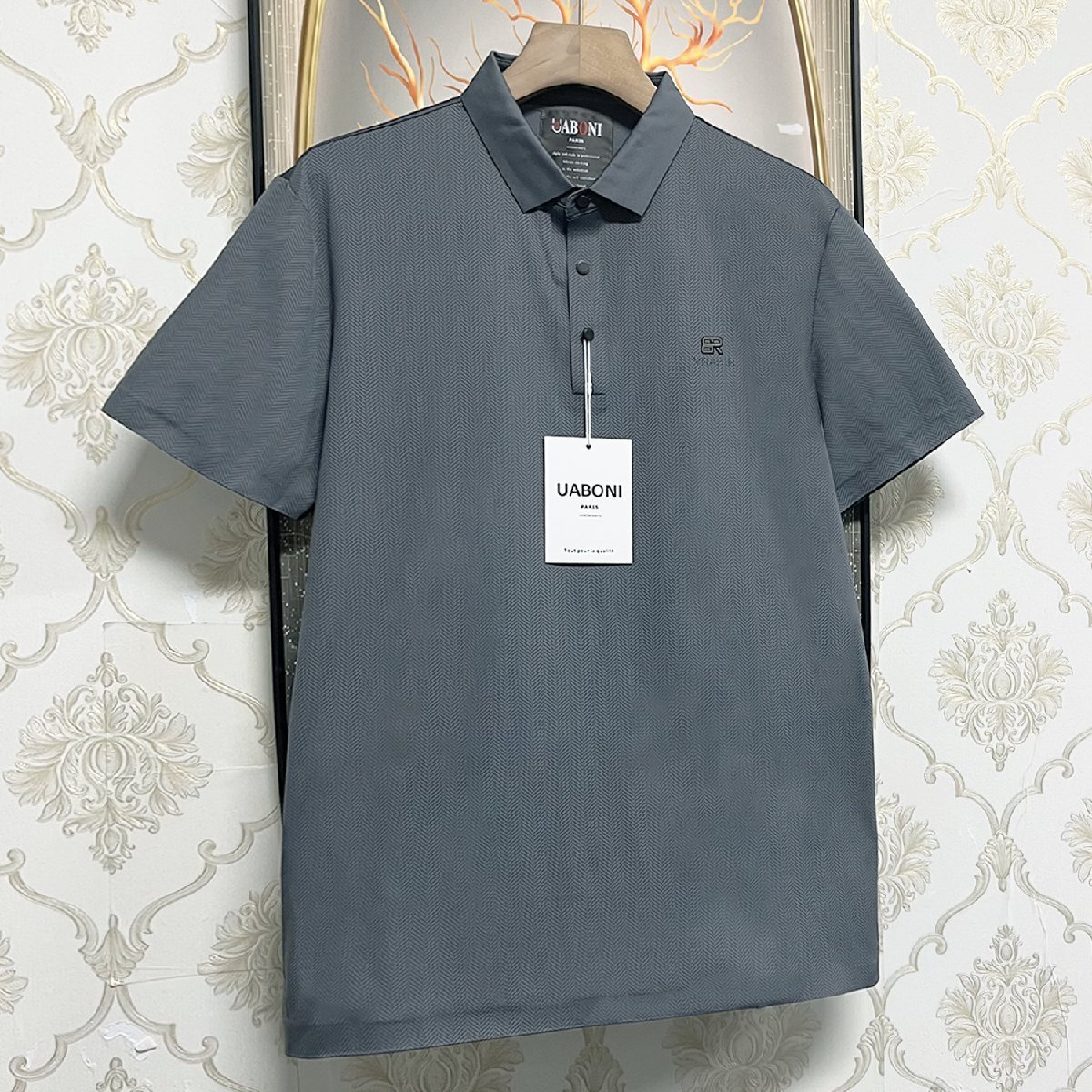 高級EU製&定価2万◆UABONI*Paris* 半袖 ポロシャツ*ユアボニ*パリ発◆上質シルク混 柔らか 薄手 総柄 オシャレ ビジネス ゴルフ L/48サイズ