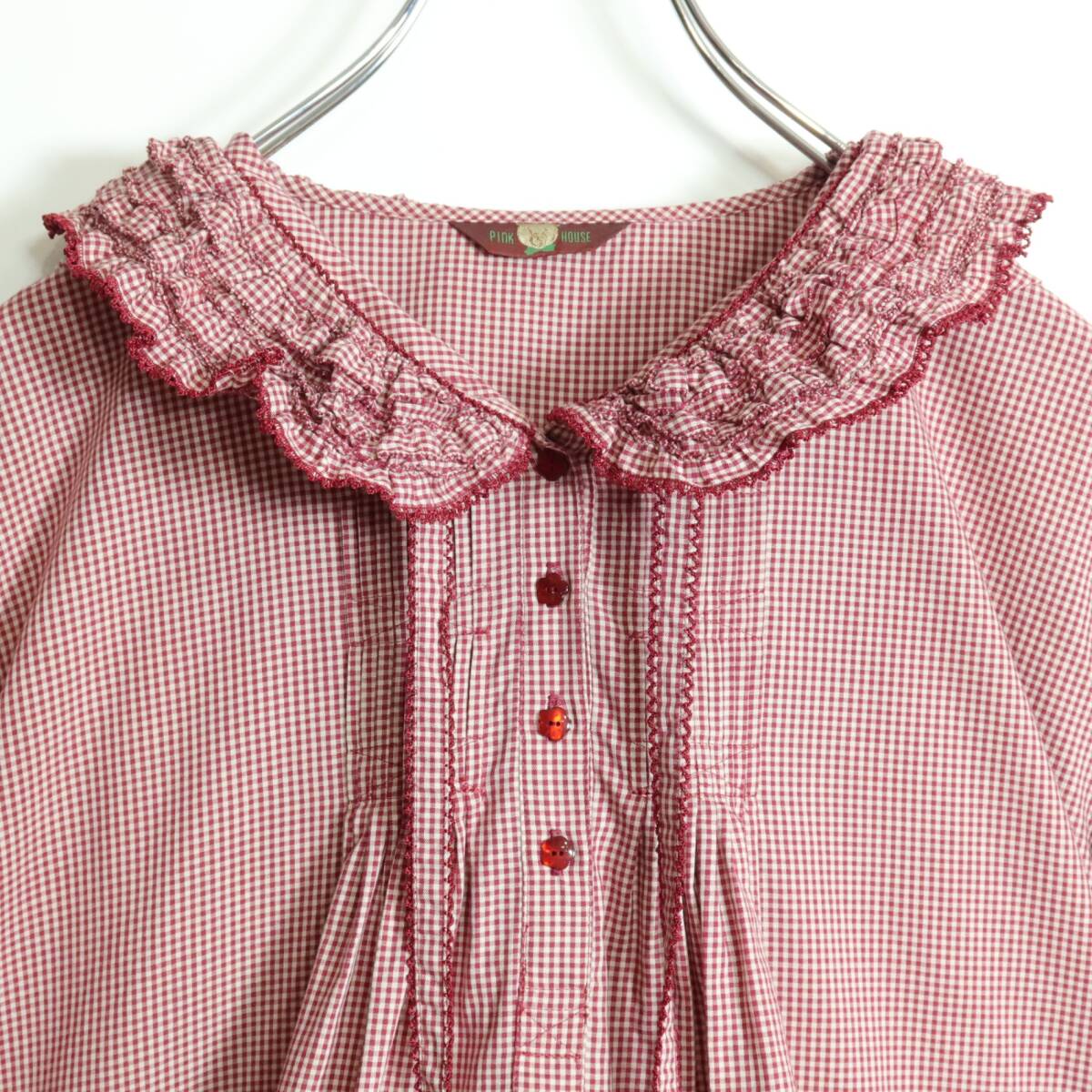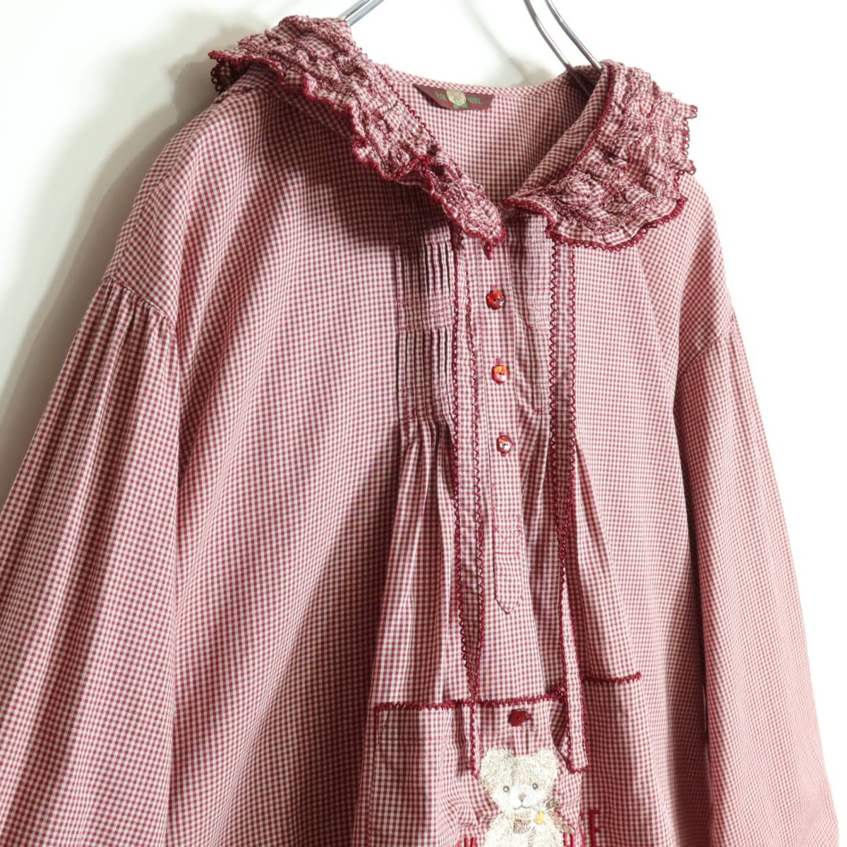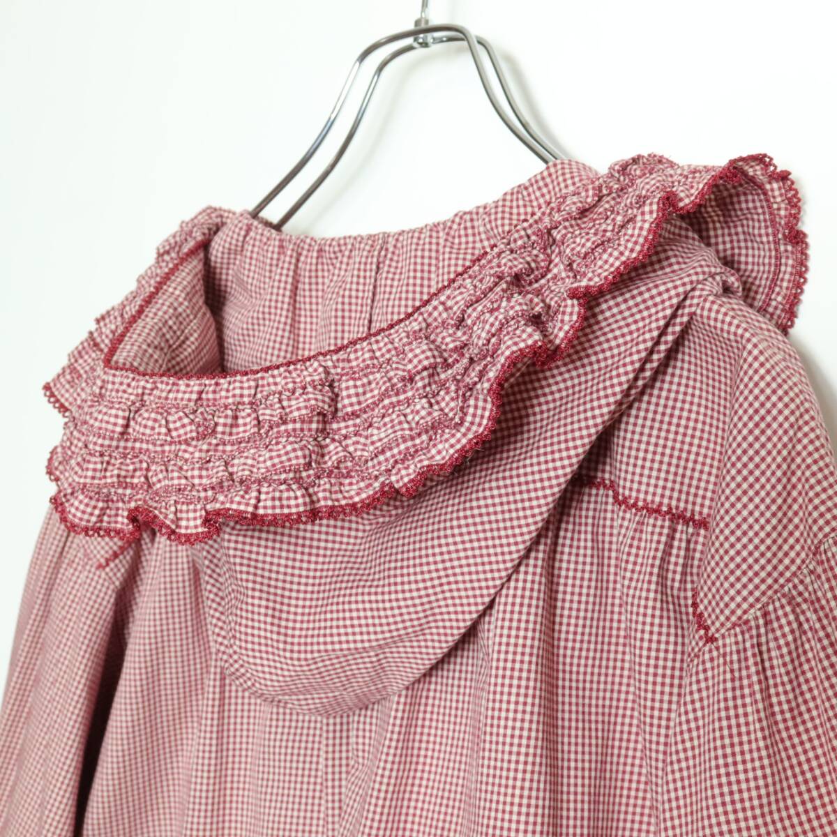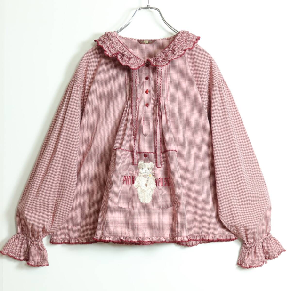 商品説明 | 【実寸約】肩幅52袖丈55バスト114着丈58 【サイズ表記】なし。実寸をご参照くださいませ。 【素材】綿100 【状態】使用感少なめの美品 【デザイン】赤系 ピンクハウスらしいディテールがたっぷり詰まった、可愛い長袖オーバーブラウスです。 細かいギンガムチェックに、たっぷりのフリルと、さらにフード付きでカジュアルさもプラス。 フロントにはテディベアの刺繍がほどこされており、遊び心あるデザインになっています。 スカート合わせはもちろん、デニムとの相性も◎ やや厚手/フロント上部にボタンあり/ポケットあり 袖口ゴム入り |