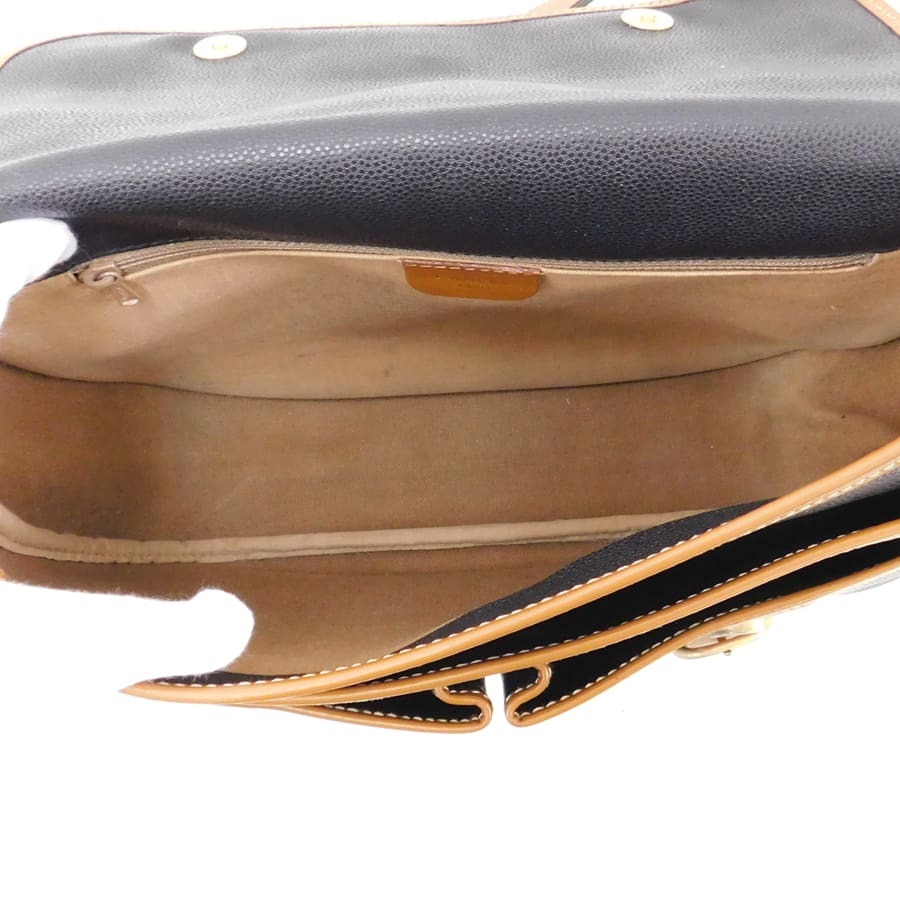 1円■ 美品/ランセル/ショルダーバッグ/ブラック×ブラウン系/レザー/肩掛け/普段使い/LANCEL ■E.Bsm.oN-18[中古]