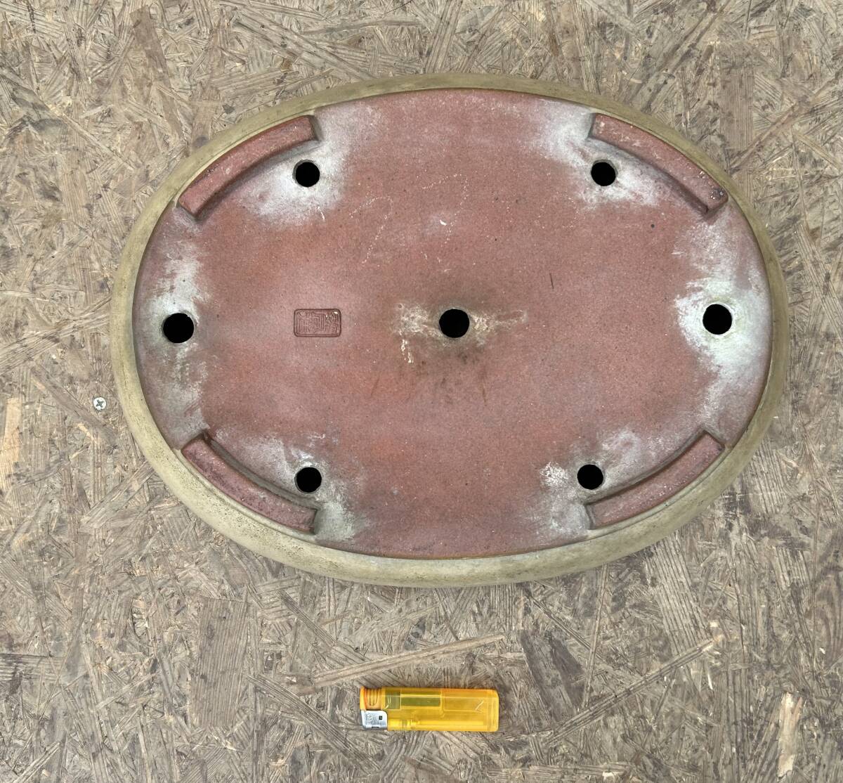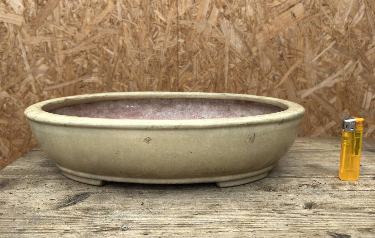 黎鳳造黄釉楕円鉢、目立った傷はありません。