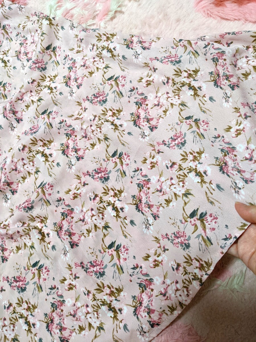 色は綺麗なピンクに落ち着いた花柄プリントだよ!