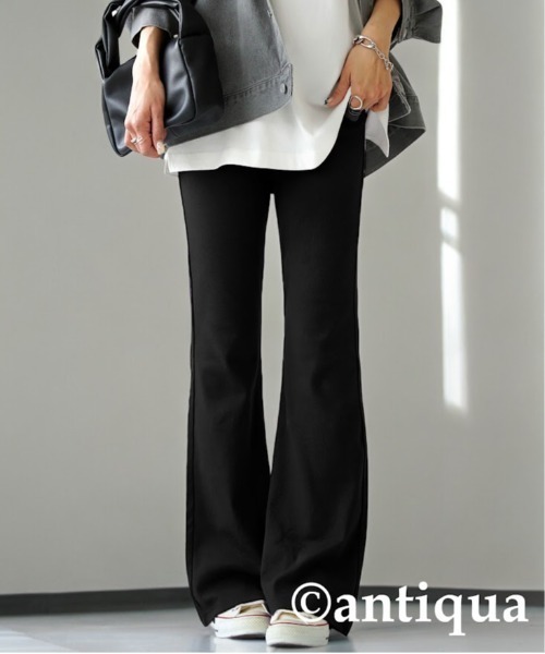 キーワード:パンツ レディース ウエストゴム スタンダード ハイウエスト フルレングス フレアパンツ 無地