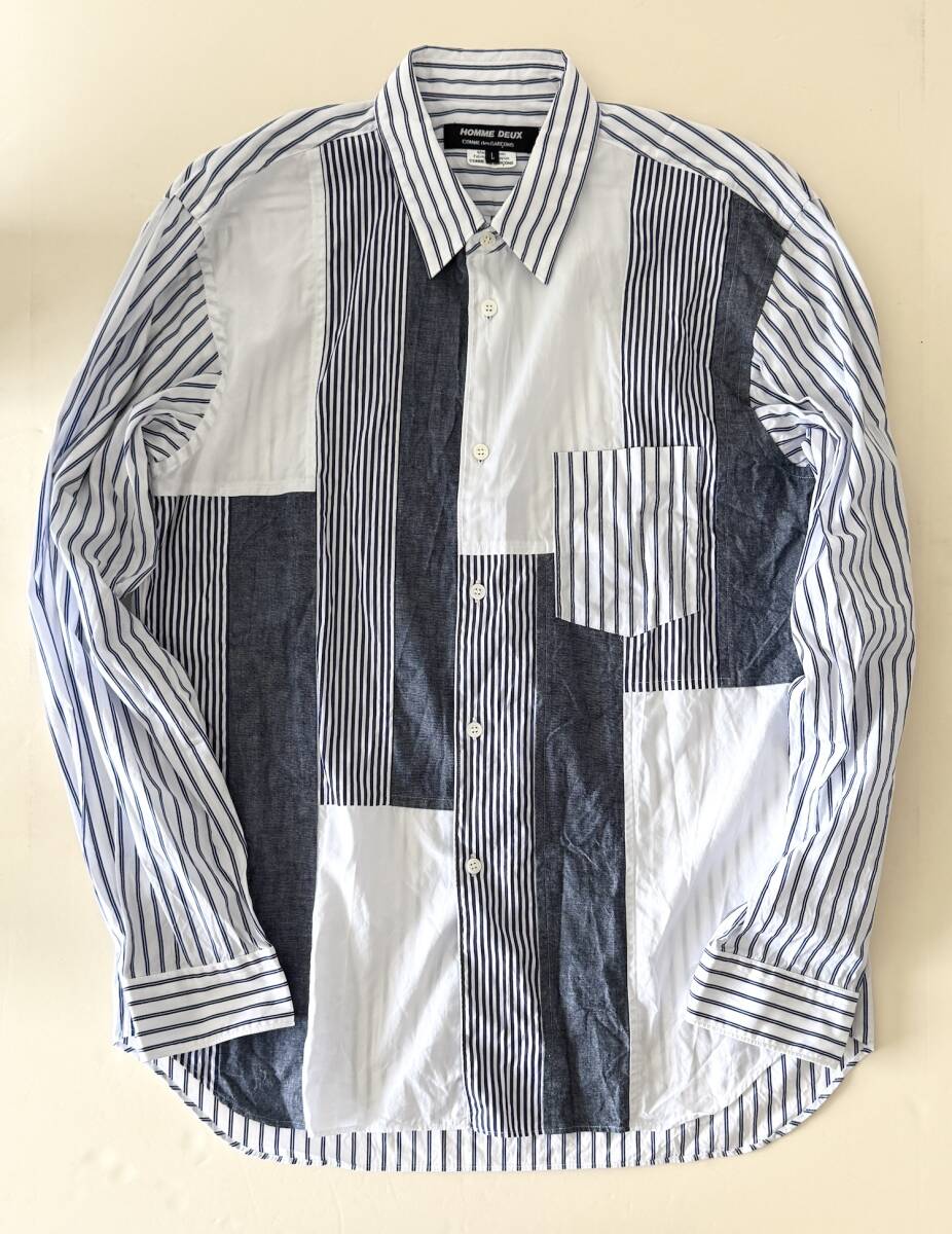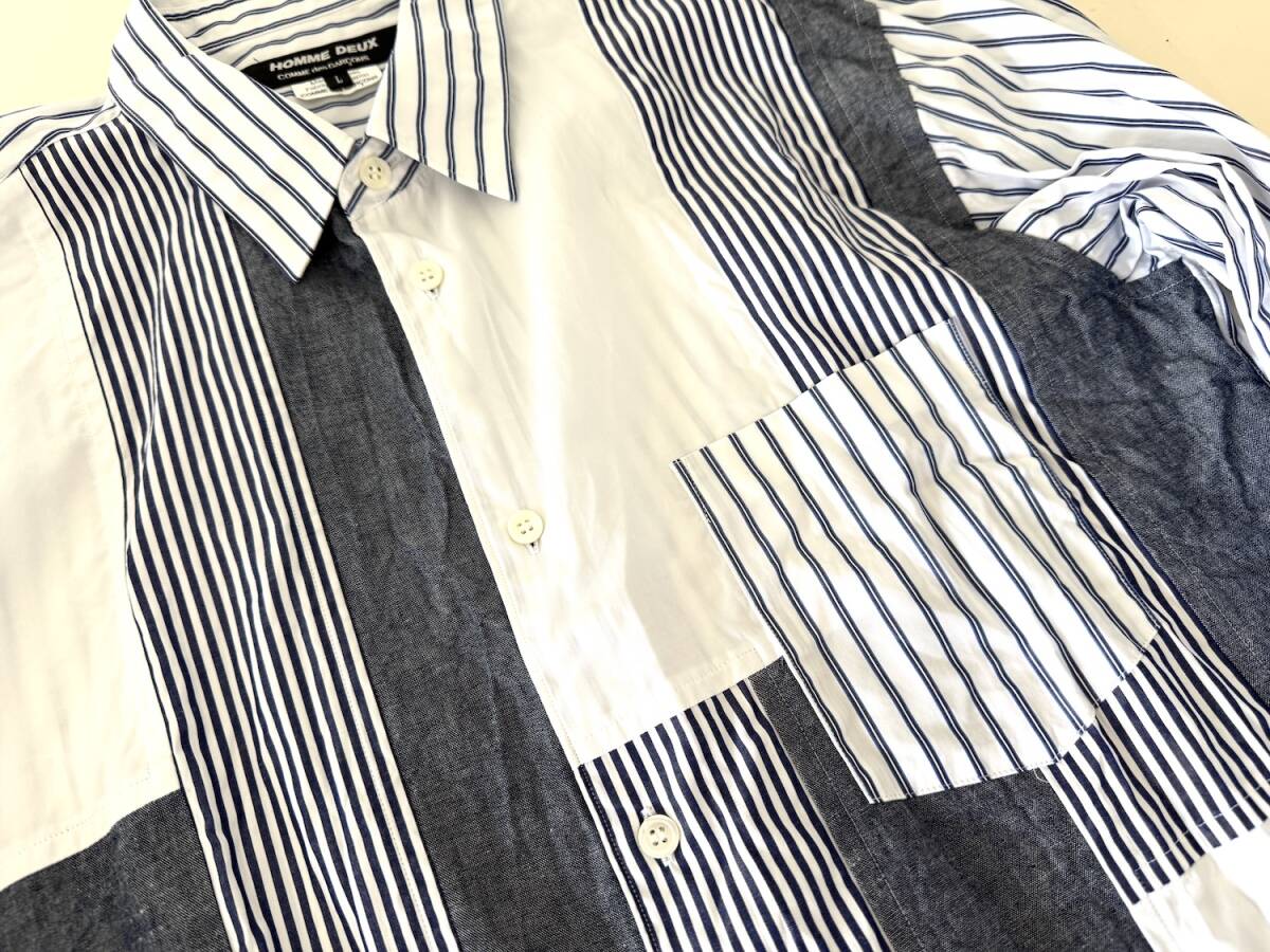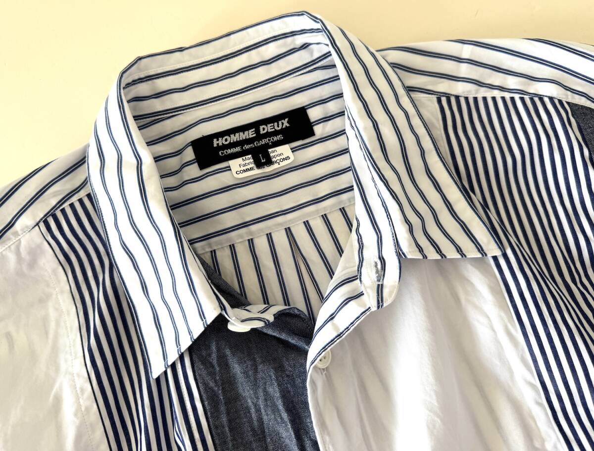 ★COMME des GARCONS HOMME DEUX コムデギャルソンオムドゥ★新品同様 ストライプ切替シャツ L ジュンヤ プリュス オム ブラック