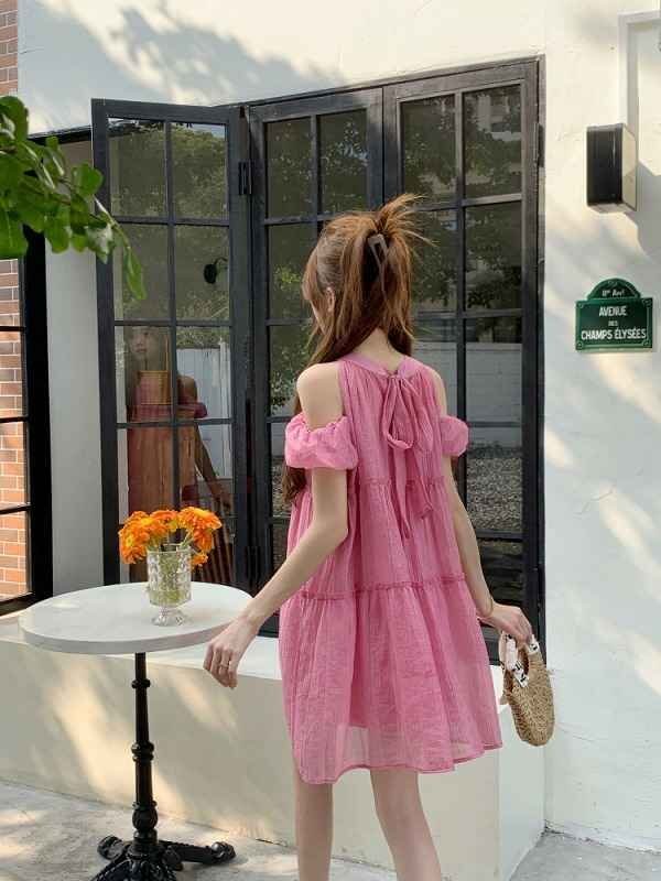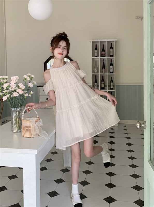 【M】着丈約83cm バスト約94cm 袖丈約13cm ウエスト約80cm 裾周り約214cm