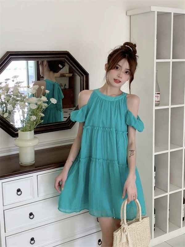 【S】着丈約82cm バスト約90cm 袖丈約12.5cm ウエスト約76cm 裾周り約210cm