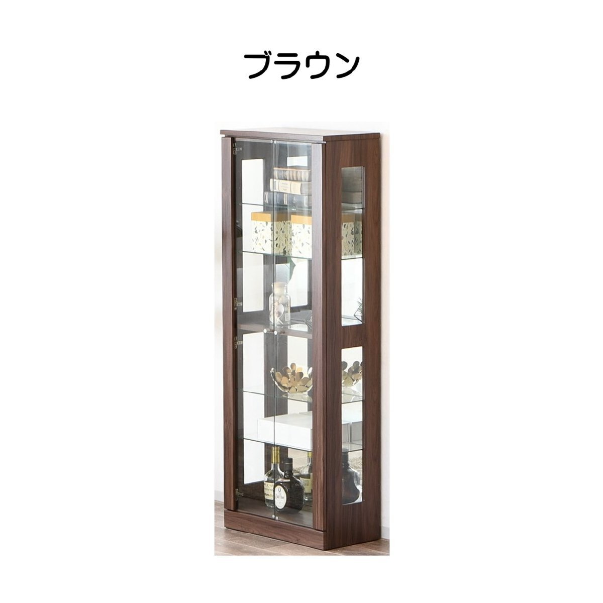 幅60cm コレクションボード 可動棚 ミラー付き 木製 コレクションケース フィギアケース ショーケース ブラウン