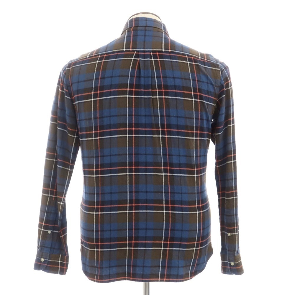 【中古】スリードッツ three dots コットン チェック ボタンダウン カジュアルシャツ【NVY】【サイズL】【749785】