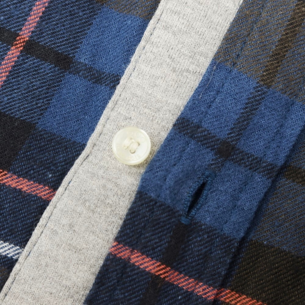【中古】スリードッツ three dots コットン チェック ボタンダウン カジュアルシャツ ライトネイビー【サイズL】 BPD