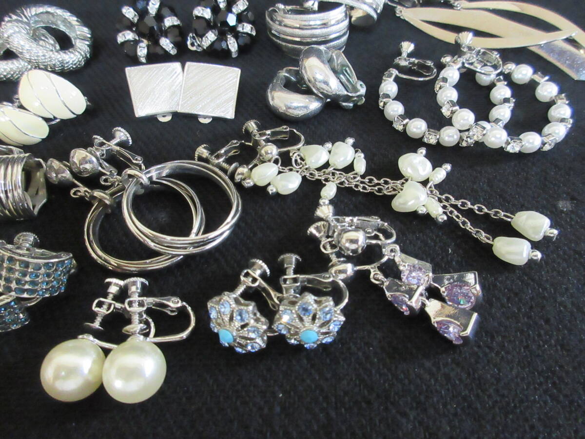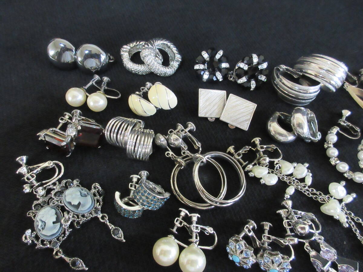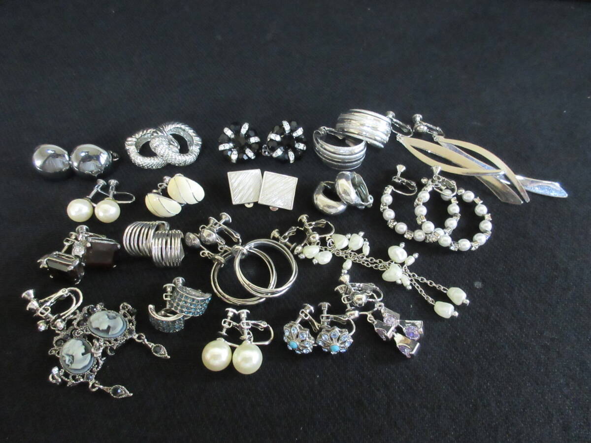 *100円~【大量】CZ/カラーストーン/パール/ラインストーン使い シルバーカラー デザイン色々 ヴィンテージ イヤリング 20点セット*T-16