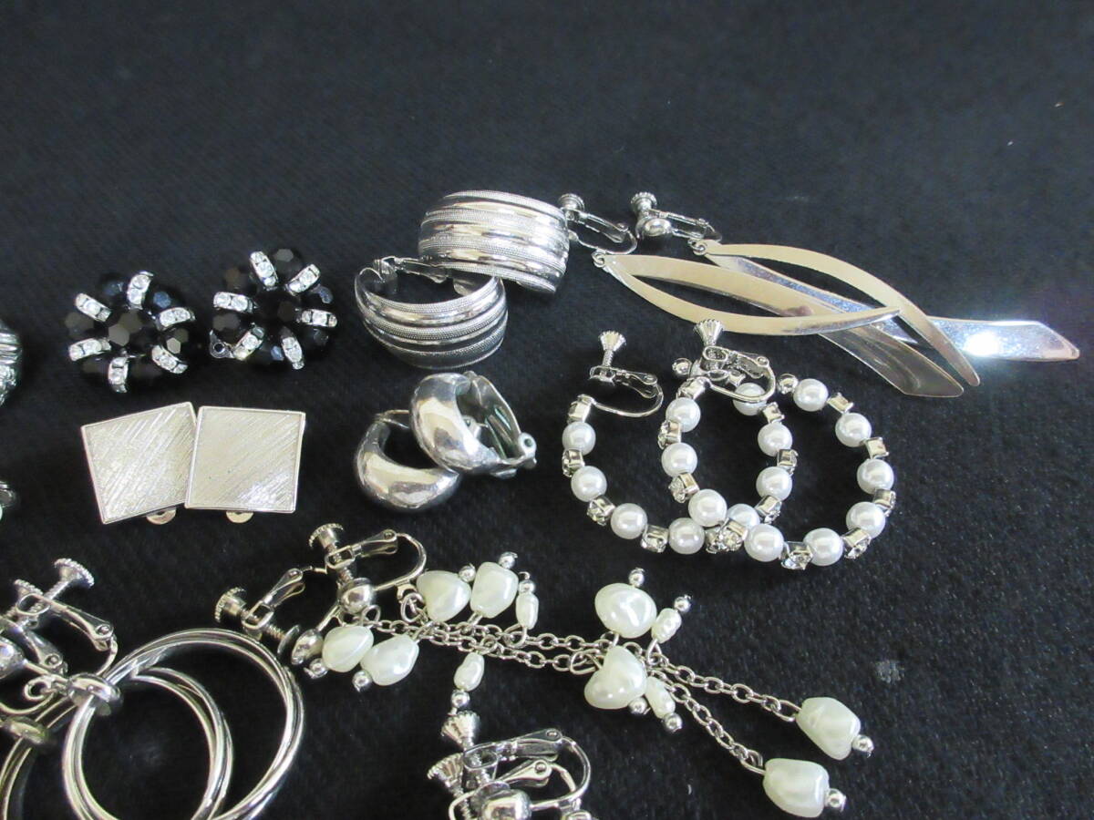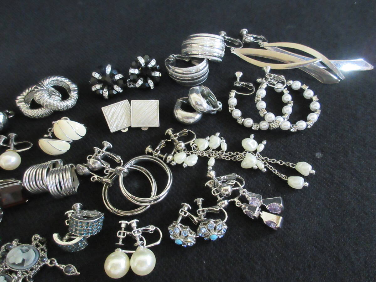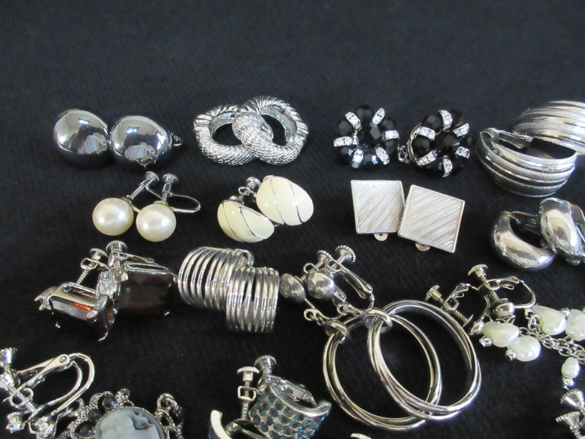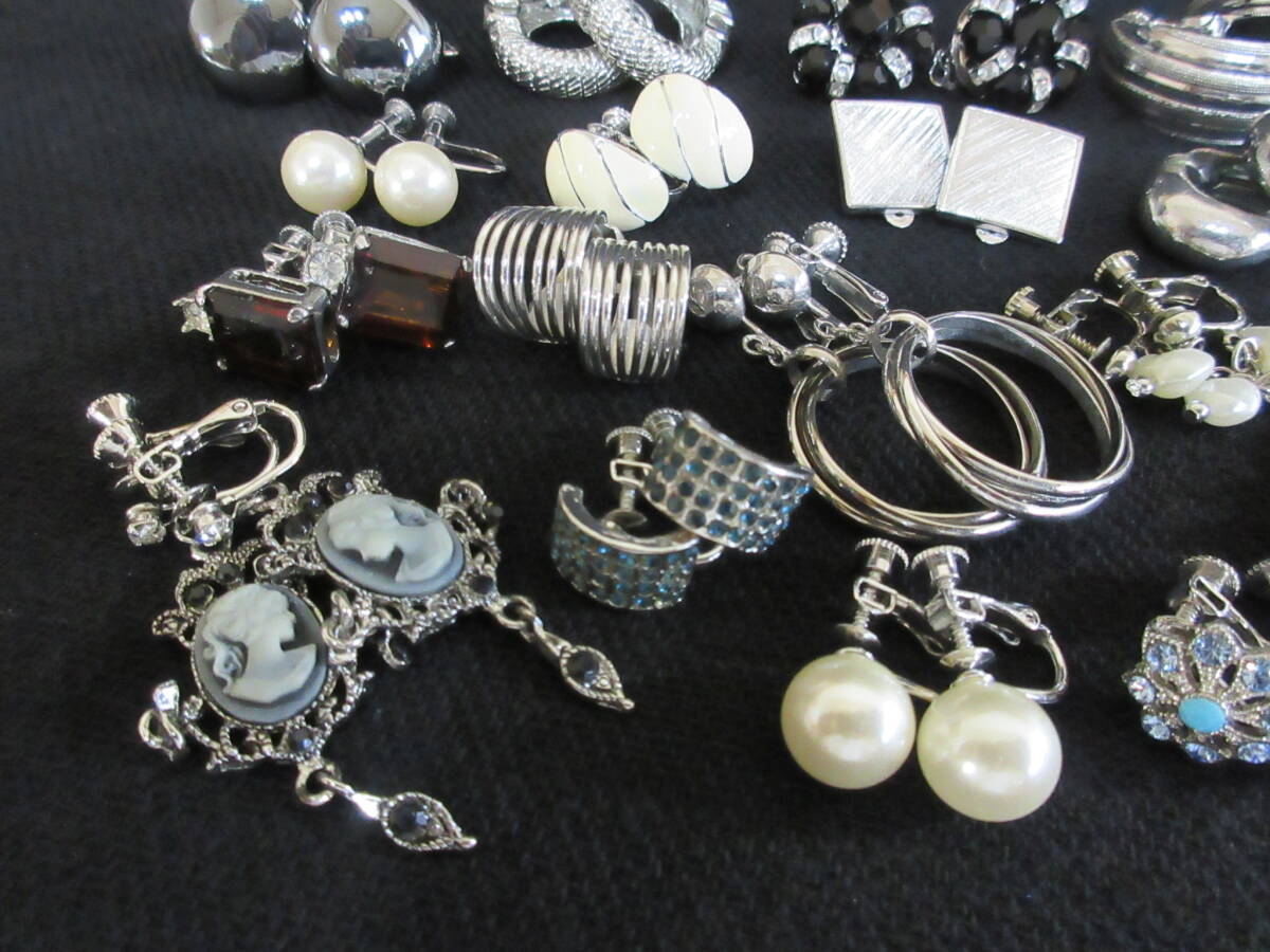 *100円~【大量】CZ/カラーストーン/パール/ラインストーン使い シルバーカラー デザイン色々 ヴィンテージ イヤリング 20点セット*T-16