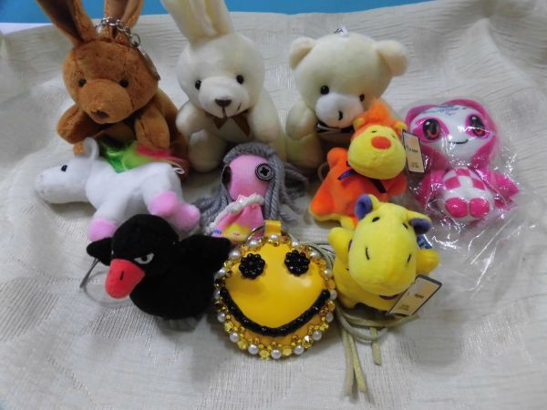 人形高さ10cmにこちゃん直径7cm あひる高さ7cm オレンジと黄色高さ6cm オリンピック11cm