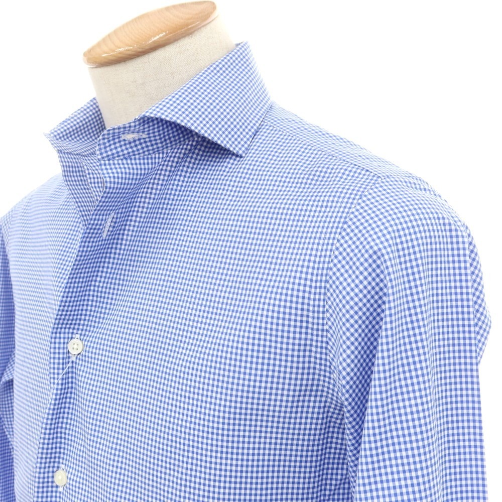 【中古】シップス SHIPS コットン ギンガムチェック ワイドカラー ドレスシャツ ブルーxホワイト【サイズ37】
