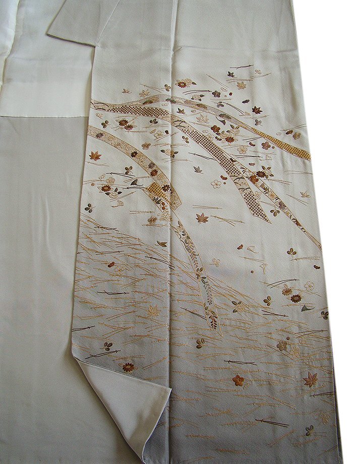 | 商品説明 | こちらのお品は「袷」でございますので、10月~5月にお召頂ければと思います。 大変にしなやかで滑らかな手触りの着心地良い重めの極上ちりめん地の生地、 落ち着きある絹鼠色地に裾にかけて灰色ぼかしに、金糸等の極め細やかな松葉や花草柄等の 総刺繍が丁寧に刺繍され、重厚感のある匠の技の美しさをご堪能頂ける仕上がりとなっております。 お慶びのお席や今日を美しく愛でるかの様な装いを印象付ける 正統派のお着物として一枚は欲しい麗しいお着物です。 八掛は共色(正絹)、裄長め、幅広い年代の方にお召頂けます。 |
