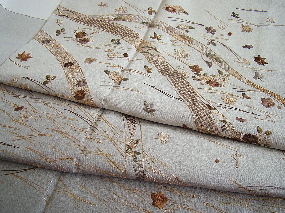 | ちょっと一言 | 着る人や見る人を華やかなオーラで包み、薫り高い装いを謳い、優美な着物スタイリングを 完成させる匠の手技を駆使した総刺繍の趣が匂い立つ素敵な訪問着です。 高度な技法により奥行きや立体感のある生き生きとした仕上がりを演出する 神秘的な空間美さえ纏う優美な雰囲気漂う気品に満ち溢れた逸品です。 |