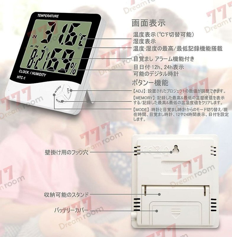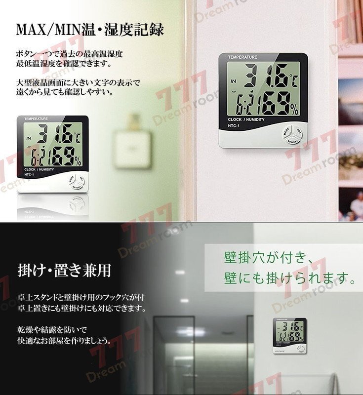 アラーム機能付き 卓上 マルチ 温湿度計 温度計 湿度計 時計 目覚まし 壁掛 置時計 掛け時計 多機能